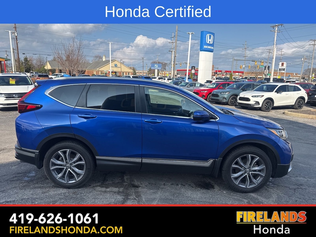 Firelands Honda is proud to offer this wonderful-looking 2022 Honda CR-V in Aegean Blue Metallic. This CR-V has been checked by our award winning service department. Hot features include: Bluetooth Hands Free, Back Up Camera, Navigation / GPS, Remote Start, Local Trade, Adaptive Cruise Control, Service Records Available, All-Wheel Drive, Heated Leather Seats, Locally Owned New Car Trade, Lane Departure Warning, Apple Carplay/Android Auto, Blind Spot Detection, Fog Lights, Automatic Emergency Braking, Forward Collision Warning, Rear Cross Traffic Alert, Honda Certified, Moonroof / Sunroof, One Owner, Power Liftgate, Memory Seats, Heated Steering Wheel. Certified.