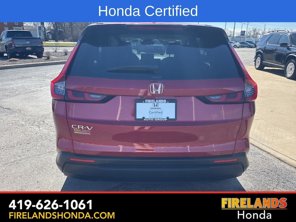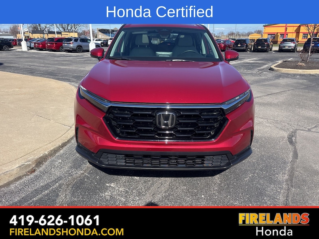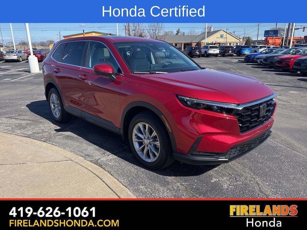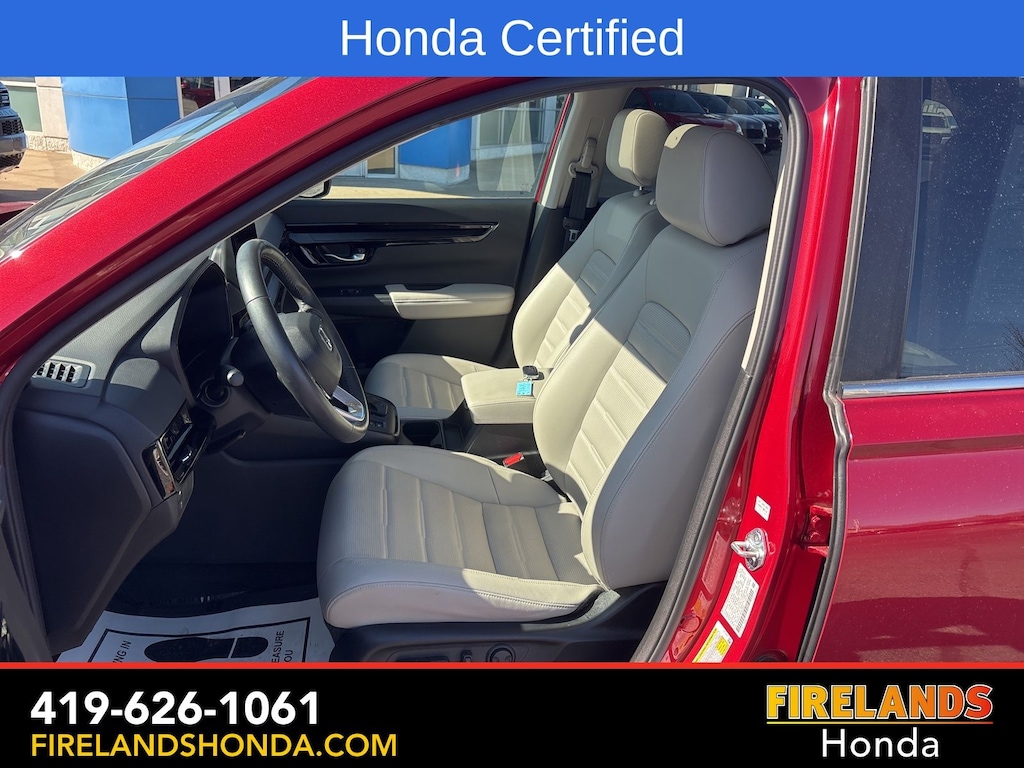 Firelands Honda is proud to offer this stunning 2023 Honda CR-V in Radiant Red Metallic. This CR-V has been checked by our award winning service department. Hot features include: Bluetooth Hands Free, Back Up Camera, Remote Start, Adaptive Cruise Control, Balance of Factory Warranty, Service Records Available, All-Wheel Drive, Heated Leather Seats, Locally Owned New Car Trade, Lane Departure Warning, Apple Carplay/Android Auto, Automatic Emergency Braking, Forward Collision Warning, Wireless Charging Pad, Honda Certified, Moonroof / Sunroof, Clean CARFAX, One Owner, No Accidents, Power Liftgate, Memory Seats. Certified.