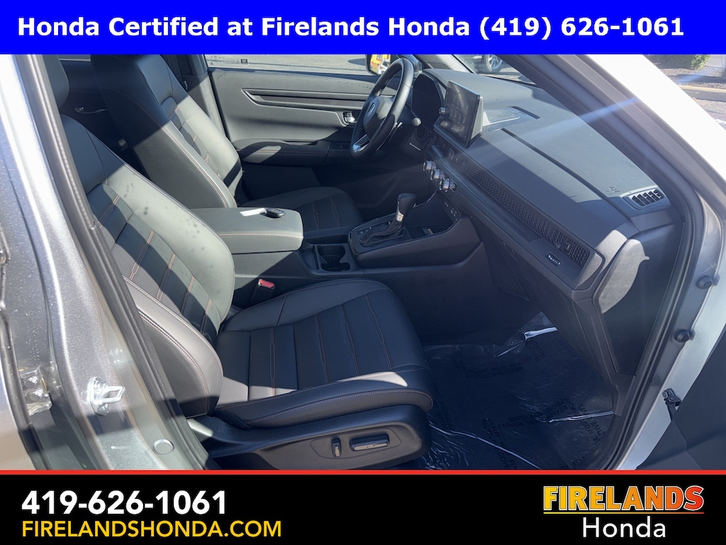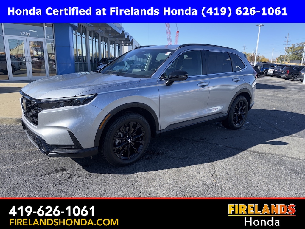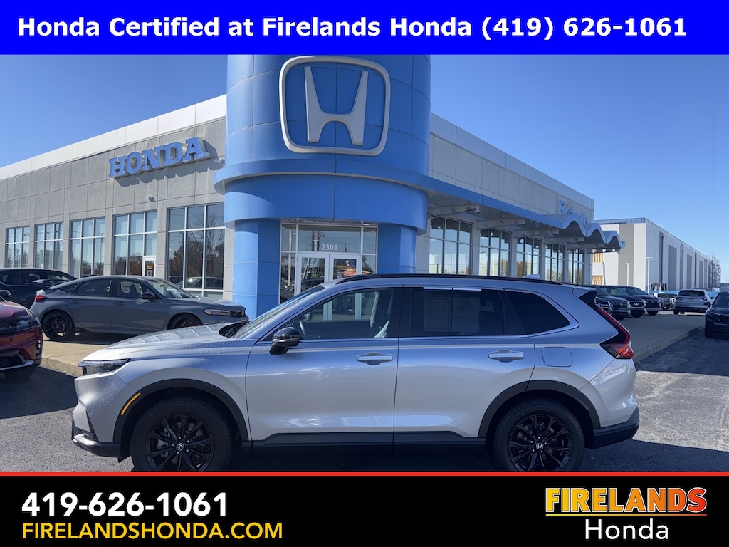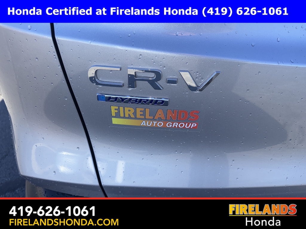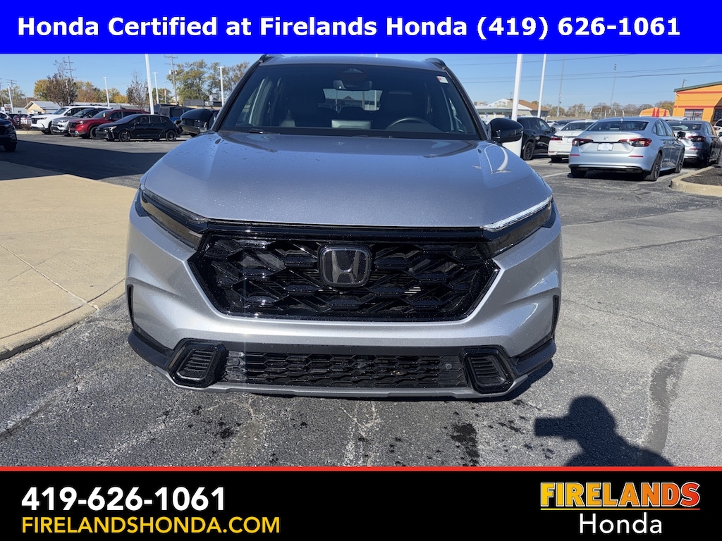 Firelands Honda is proud to offer this wonderful 2025 Honda CR-V Hybrid in Solar Silver Metallic. This CR-V Hybrid has been checked by our award winning service department. Hot features include: Bluetooth Hands Free, Back Up Camera, Remote Start, Adaptive Cruise Control, Balance of Factory Warranty, Service Records Available, All-Wheel Drive, Heated Leather Seats, Locally Owned New Car Trade, Lane Departure Warning, Apple Carplay/Android Auto, Blind Spot Detection, Automatic Emergency Braking, Forward Collision Warning, Rear Cross Traffic Alert, Wireless Charging Pad, Honda Certified, Moonroof / Sunroof, Clean CARFAX, One Owner, No Accidents, Power Liftgate, Memory Seats, 4-Wheel Disc Brakes, 8 Speakers, ABS brakes, Adaptive Cruise Control: Adaptive Cruise Control (ACC) with Low-Speed Follow, Air Conditioning, Alloy wheels, AM/FM radio: SiriusXM, Auto High-beam Headlights, Auto-dimming Rear-View mirror, Automatic temperature control, Blind Spot Information (BSI) System warning, Brake assist, Bumpers: body-color, Compass, Delay-off headlights, Dual front impact airbags, Dual front side impact airbags, Electronic Stability Control, Exterior Parking Camera Rear, Four wheel independent suspension, Front anti-roll bar, Front Bucket Seats, Front dual zone A/C, Fully automatic headlights, Heated door mirrors, Heated Front Bucket Seats, Heated front seats, Illuminated entry, Knee airbag, Leather Seat Trim, Leather Shift Knob, Leather steering wheel, Low tire pressure warning, Memory seat, Occupant sensing airbag, Outside temperature display, Overhead airbag, Panic alarm, Passenger door bin, Power door mirrors, Power driver seat, Power Liftgate, Power moonroof, Power passenger seat, Power steering, Power windows, Radio data system, Radio: 320-Watt AM/FM/HD/SiriusXM Audio System, Rear anti-roll bar, Rear reading lights, Rear side impact airbag, Rear window defroster, Rear window wiper, Remote keyless entry, Security system, Speed control, Speed-sensing steering, Speed-Sensitive Wipers, Split folding rear seat, Spoiler, Steering wheel mounted audio controls, Traction control, Trip computer, Variably intermittent wipers, Wheels: 18" Berlina Black Alloy. Certified.