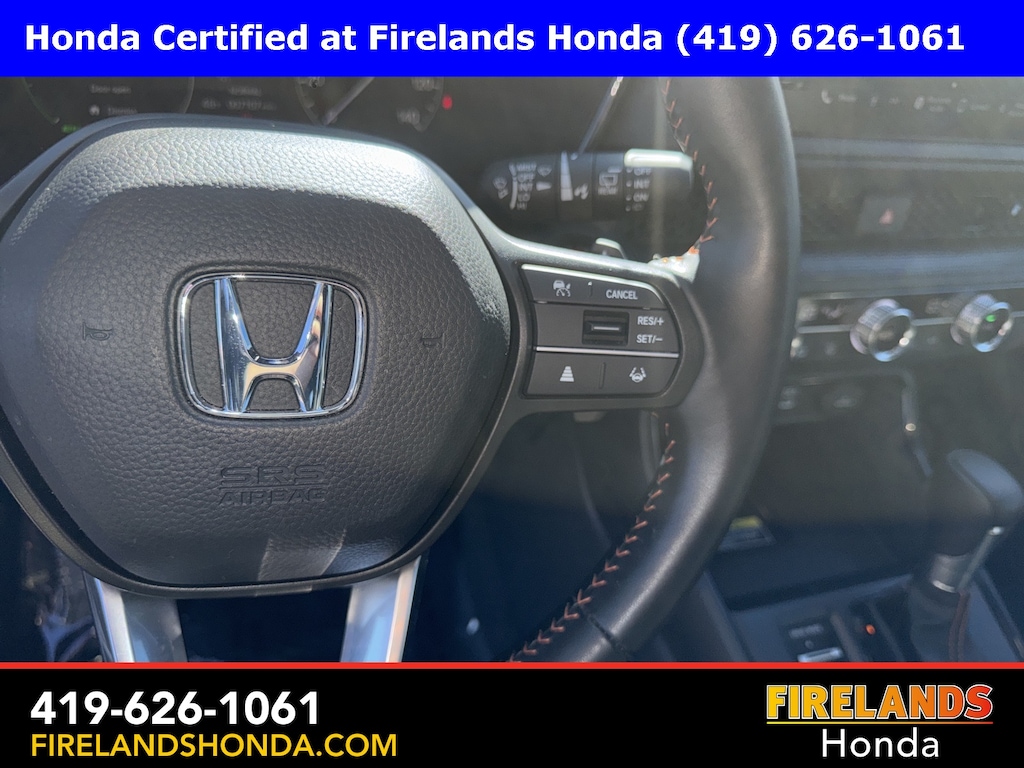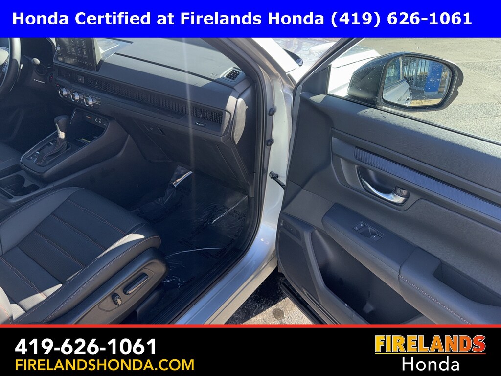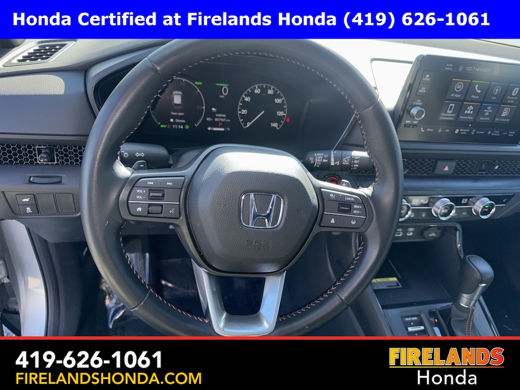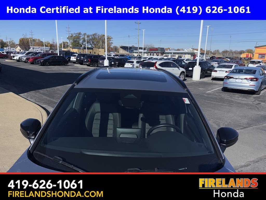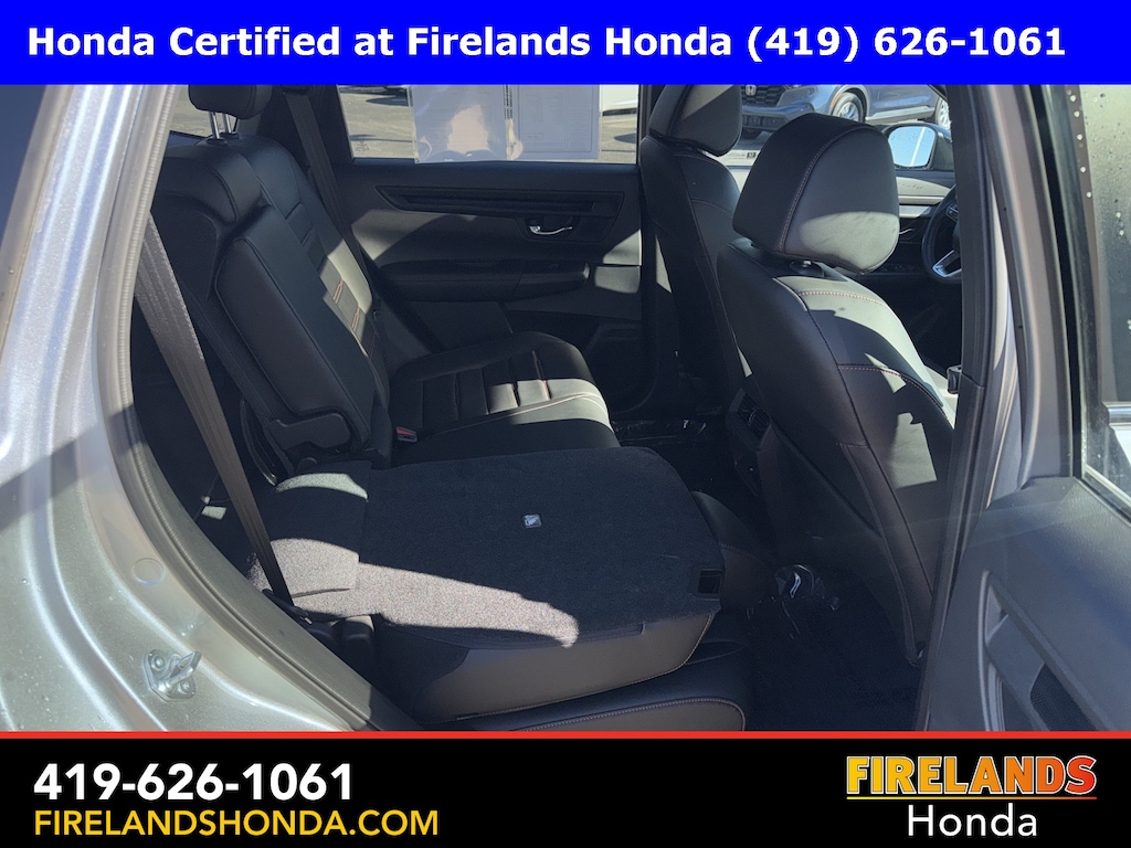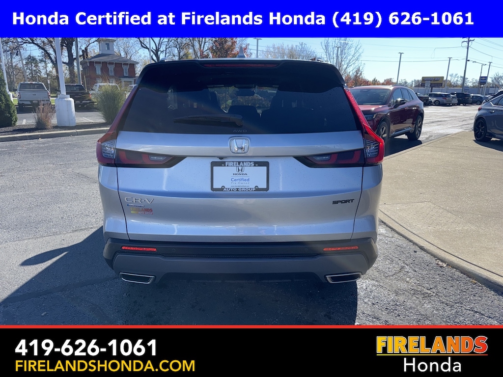 Firelands Honda is proud to offer this wonderful 2025 Honda CR-V Hybrid in Solar Silver Metallic. This CR-V Hybrid has been checked by our award winning service department. Hot features include: Bluetooth Hands Free, Back Up Camera, Remote Start, Adaptive Cruise Control, Balance of Factory Warranty, Service Records Available, All-Wheel Drive, Heated Leather Seats, Locally Owned New Car Trade, Lane Departure Warning, Apple Carplay/Android Auto, Blind Spot Detection, Automatic Emergency Braking, Forward Collision Warning, Rear Cross Traffic Alert, Wireless Charging Pad, Honda Certified, Moonroof / Sunroof, Clean CARFAX, One Owner, No Accidents, Power Liftgate, Memory Seats, 4-Wheel Disc Brakes, 8 Speakers, ABS brakes, Adaptive Cruise Control: Adaptive Cruise Control (ACC) with Low-Speed Follow, Air Conditioning, Alloy wheels, AM/FM radio: SiriusXM, Auto High-beam Headlights, Auto-dimming Rear-View mirror, Automatic temperature control, Blind Spot Information (BSI) System warning, Brake assist, Bumpers: body-color, Compass, Delay-off headlights, Dual front impact airbags, Dual front side impact airbags, Electronic Stability Control, Exterior Parking Camera Rear, Four wheel independent suspension, Front anti-roll bar, Front Bucket Seats, Front dual zone A/C, Fully automatic headlights, Heated door mirrors, Heated Front Bucket Seats, Heated front seats, Illuminated entry, Knee airbag, Leather Seat Trim, Leather Shift Knob, Leather steering wheel, Low tire pressure warning, Memory seat, Occupant sensing airbag, Outside temperature display, Overhead airbag, Panic alarm, Passenger door bin, Power door mirrors, Power driver seat, Power Liftgate, Power moonroof, Power passenger seat, Power steering, Power windows, Radio data system, Radio: 320-Watt AM/FM/HD/SiriusXM Audio System, Rear anti-roll bar, Rear reading lights, Rear side impact airbag, Rear window defroster, Rear window wiper, Remote keyless entry, Security system, Speed control, Speed-sensing steering, Speed-Sensitive Wipers, Split folding rear seat, Spoiler, Steering wheel mounted audio controls, Traction control, Trip computer, Variably intermittent wipers, Wheels: 18" Berlina Black Alloy. Certified.