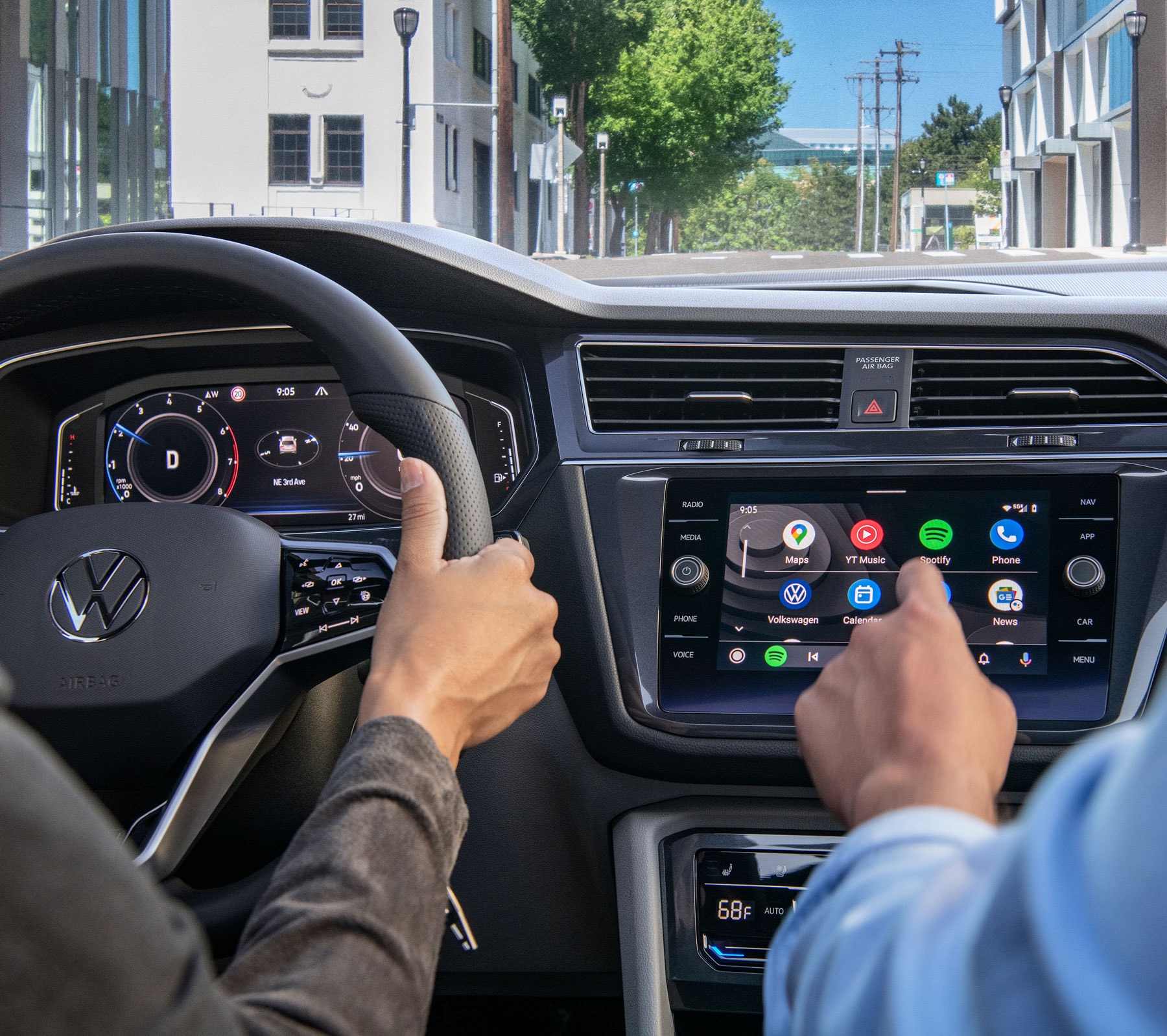 The Volkswagen Tiguan offers some of the most advanced infotainment and connectivity technologies in its class. The standard 12.9-inch touchscreen multimedia system includes features like App-Connect, letting you integrate your compatible smartphone and access select apps. You can also upgrade to a stunning 15-inch touchscreen on higher trims. Available built-in navigation can help guide you to your destination with ease. With available wireless device charging and 4G LTE Wi-Fi capability, the Tiguan helps you stay connected from nearly anywhere your travels take you.