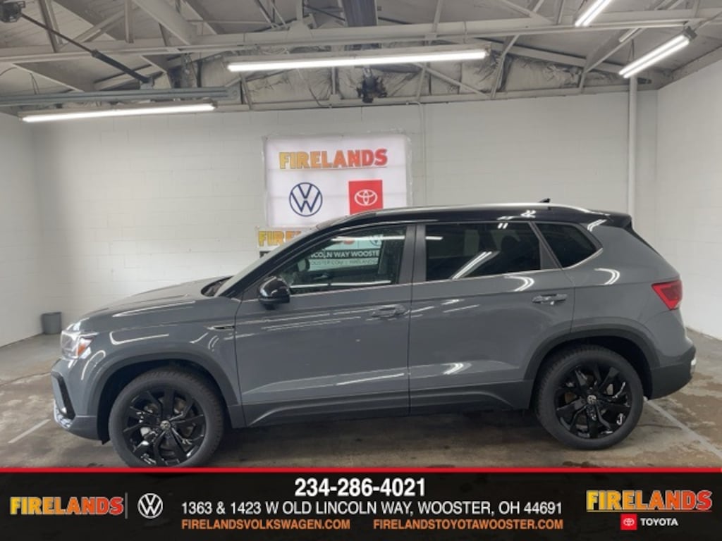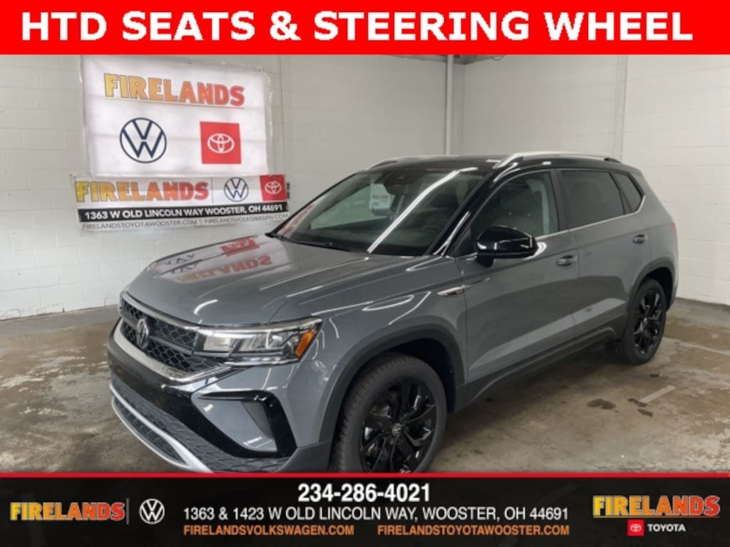 Pure Gray w/Deep Black Roof 2024 Volkswagen Taos 1.5T SE HTD SEATS & STEERING WHEEL FWD 8-Speed Automatic with Tiptronic 1.5L I4 Turbocharged DOHC 16V LEV3-SULEV30 158hp Great Price, Leather Seats, Heated Seats, Heated Steering Wheel, Remote Start, CarPlay, Android Auto, Bluetooth, Backup Camera, Rain Sensing Wipers, Blind Spot Monitoring, Adaptive Cruise Control, Lane Departure Warning, Brake Assist, Steering Wheel Controls, Cruise Control, Keyless Start, Keyless Entry, Power Lift Gate, Premium Audio, Satellite Radio, Premium/Alloy Wheels, 1.5L I4 Turbocharged DOHC 16V LEV3-SULEV30 158hp, FWD, 3.23 Axle Ratio, ABS brakes, Active Blind Spot Monitor, Active Cruise Control, AM/FM radio: SiriusXM with 360L, Automatic temperature control, Black Wheel Package, Brake assist, CloudTex & Cloth Seating Surfaces, Compass, Emergency communication system: VW Car-Net Safe & Secure 5-year, Exterior Parking Camera Rear, Front Bucket Seats, Front dual zone A/C, Front Strut Rear Torsion Beam Suspension, Fully automatic headlights, Heated door mirrors, Heated Front Bucket Seats, Heated front seats, Heated steering wheel, Illuminated entry, Leather Shift Knob, Low tire pressure warning, Outside temperature display, Panoramic Sunroof Package, Power driver seat, Radio data system, Radio: MIB3 Composition Media AM/FM/HD, Rain sensing wipers, Rear seat center armrest, Remote keyless entry, Roof rack: rails only, Security system, Speed control, Speed-sensing steering, Spoiler, Steering wheel mounted audio controls, Tachometer, Tilt steering wheel, Traction control, Trip computer, VW Care, Wheels: 18" Black Painted Alloy.