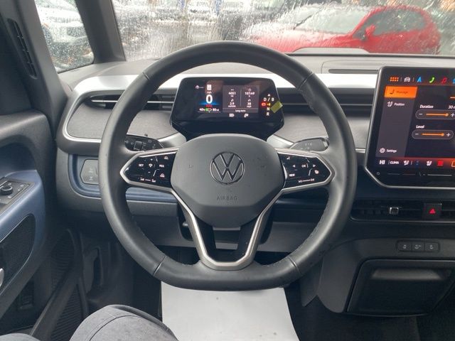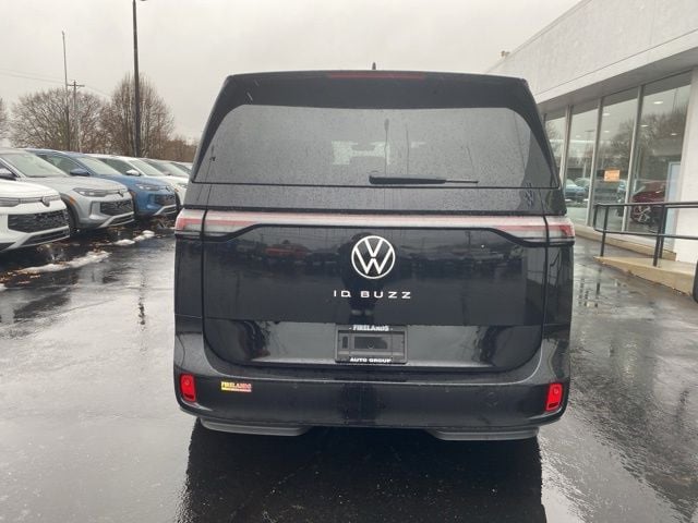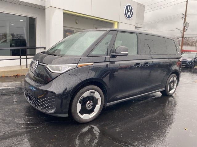 Deep Black Pearl 2025 Volkswagen ID. Buzz NAVIGATION RWD Single-Speed Automatic Electric Motor Heated Seats, Heated Steering Wheel, Navigation System, CarPlay, Android Auto, Bluetooth, Backup Camera, Rain Sensing Wipers, Blind Spot Monitoring, Adaptive Cruise Control, Lane Departure Warning, Parking Sensors, Automatic Parking, Brake Assist, Steering Wheel Controls, Cruise Control, Multi Zone Climate Control, Keyless Entry, Power Lift Gate, Premium Audio, Satellite Radio, Third Row Seats, Premium/Alloy Wheels, ID. Buzz NAVIGATION, 4D Passenger Van, 3rd row seats: split-bench, 9 Speakers, ABS brakes, Active Cruise Control, Alloy wheels, Auto High-beam Headlights, Auto-dimming Rear-View mirror, Brake assist, Delay-off headlights, Dual front impact airbags, Electronic Stability Control, Emergency communication system: VW Car-Net Safe & Secure 5-year, First Aid Kit, Four wheel independent suspension, Front Bucket Seats, Front dual zone A/C, Fully automatic headlights, Heated & Actively Ventilated Front Seats, Heated door mirrors, Heated front seats, Heated rear seats, Heated steering wheel, Illuminated entry, Leather steering wheel, Low tire pressure warning, Memory seat, Navigation System, Occupant sensing airbag, Outside temperature display, Overhead airbag, Perforated V-Tex Leatherette Seating Surfaces, Power driver seat, Power Liftgate, Power passenger seat, Radio: Discover Pro Max w/Touchscreen Navigation, Rain sensing wipers, Rear air conditioning, Rearview Mirror w/HomeLink Connect, Remote keyless entry, Speed-sensing steering, Spoiler, Steering wheel mounted audio controls, TBD Axle Ratio, Tilt steering wheel, Traction control, Trip computer, Turn signal indicator mirrors, Ventilated front seats.