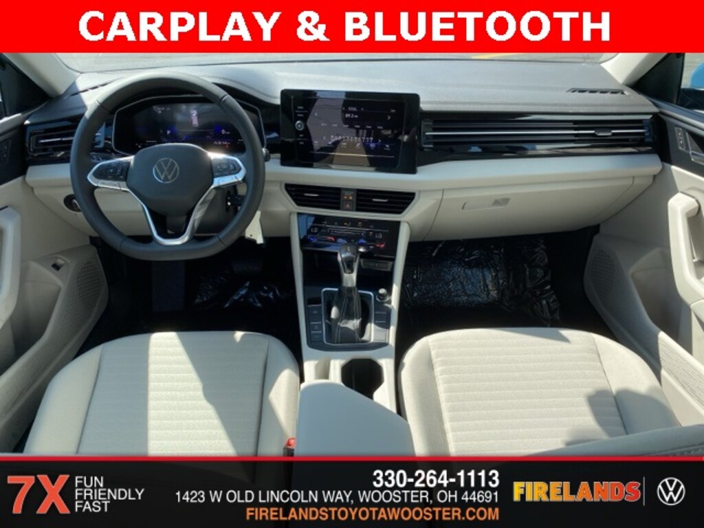 Monterey Blue 2025 Volkswagen Jetta 1.5T S CARPLAY & BLUETOOTH FWD 8-Speed Automatic with Tiptronic 1.5L I-4 DI DOHC Turbocharged CarPlay, Bluetooth, Backup Camera, Rain Sensing Wipers, Blind Spot Monitoring, Adaptive Cruise Control, Lane Departure Warning, Brake Assist, Steering Wheel Controls, Cruise Control, Satellite Radio, Premium/Alloy Wheels, 4D Sedan, 1.5L I-4 DI DOHC Turbocharged, ABS brakes, Active Blind Spot Monitor, Auto-dimming Rear-View mirror, Automatic temperature control, Brake assist, Cloth Seat Trim, Emergency communication system: VW Car-Net Safe & Secure 5-year, Exterior Parking Camera Rear, First Aid Kit, Front Bucket Seats, Front dual zone A/C, Fully automatic headlights, Heated door mirrors, Illuminated entry, Leather Shift Knob, Leather steering wheel, Low tire pressure warning, Outside temperature display, Radio data system, Radio: MIB3 Composition Color w/8" Touchscreen, Rain sensing wipers, Remote keyless entry, Split folding rear seat, Steering wheel mounted audio controls, VW Care, Wheels: 16" 2-Tone Machined Alloy.
