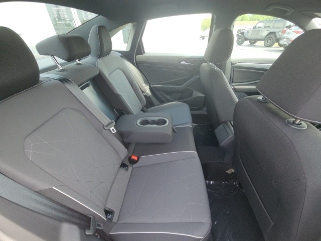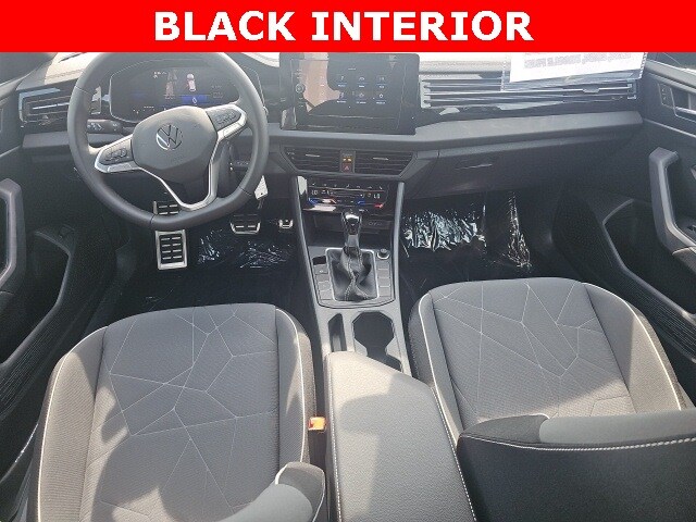Deep Black Pearl 2025 Volkswagen Jetta 1.5T Sport HTD SEATS & NAV FWD 8-Speed Automatic with Tiptronic 1.5L I-4 DI DOHC Turbocharged Heated Seats, Navigation System, CarPlay, Bluetooth, Backup Camera, Rain Sensing Wipers, Blind Spot Monitoring, Lane Departure Warning, Brake Assist, Steering Wheel Controls, Cruise Control, Premium Audio, Satellite Radio, Premium/Alloy Wheels, Jetta 1.5T Sport HTD SEATS & NAV, 1.5L I-4 DI DOHC Turbocharged, 4-Wheel Disc Brakes, Active Blind Spot Monitor, Alloy wheels, Auto-dimming Rear-View mirror, Automatic temperature control, Brake assist, Cloth Seat Trim, Delay-off headlights, Dual front impact airbags, Dual front side impact airbags, Electronic Stability Control, Emergency communication system: VW Car-Net Safe & Secure 5-year, Exterior Parking Camera Rear, First Aid Kit, Front anti-roll bar, Front Bucket Seats, Front Center Armrest, Front dual zone A/C, Front wheel independent suspension, Fully automatic headlights, Heated door mirrors, Heated Front Seats, Heated front seats, Heavy Duty Trunk Liner w/VW CarGo Blocks, Illuminated entry, Leather Shift Knob, Leather steering wheel, Low tire pressure warning, Overhead airbag, Overhead console, Panic alarm, Power door mirrors, Radio: MIB3 Composition Color w/8" Touchscreen, Rain sensing wipers, Rear seat center armrest, Rear window defroster, Remote keyless entry, Rubber Monster Mats Kit (Set of 4), Speed-sensing steering, Steering wheel mounted audio controls, Telescoping steering wheel, Tilt steering wheel, Traction control, Trip computer.