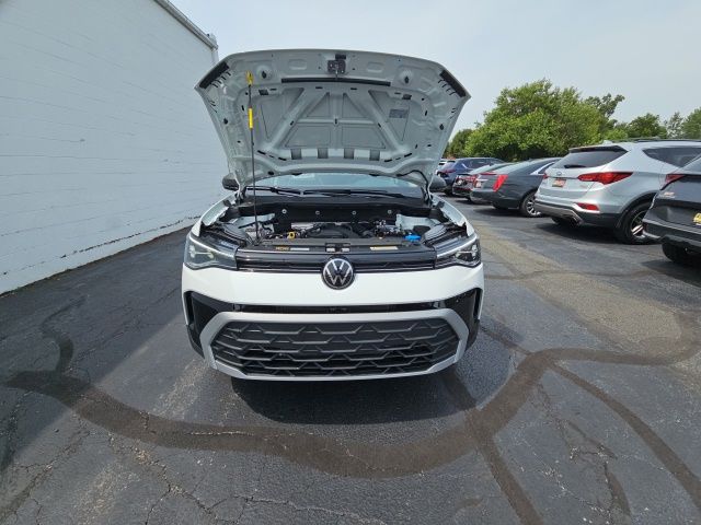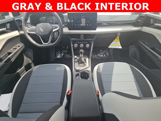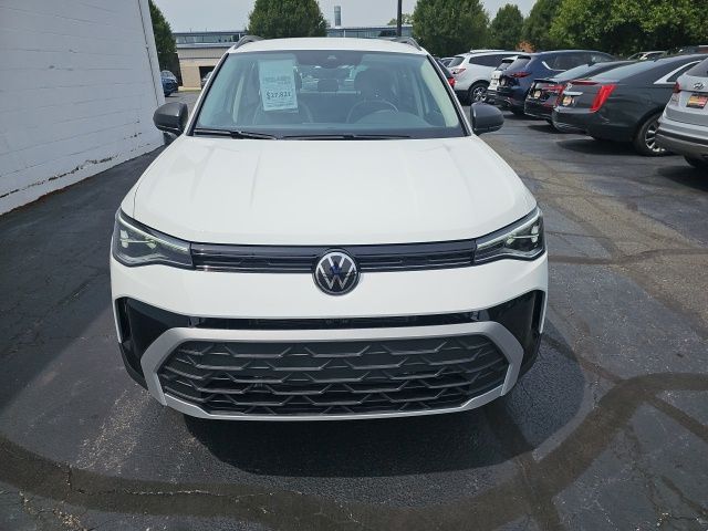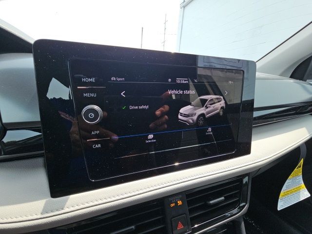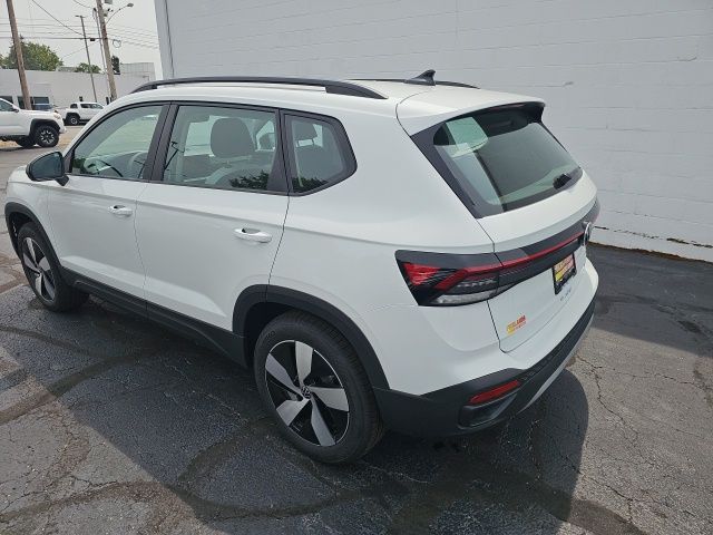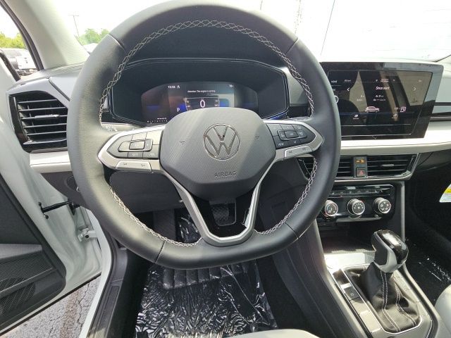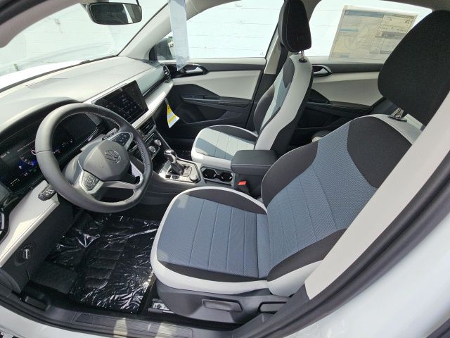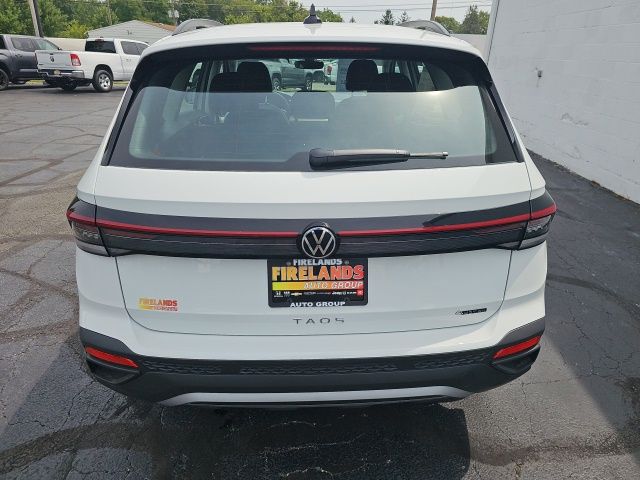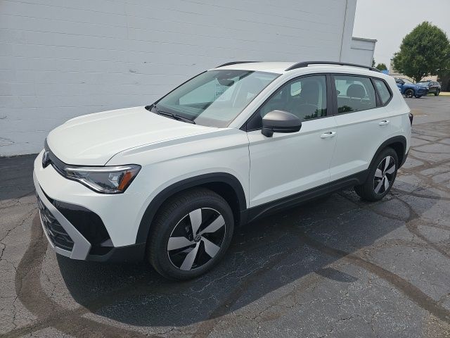 Pure White 2025 Volkswagen Taos 1.5T S HTD STEERING WHEEL & SEATS AWD 8-Speed Automatic with Tiptronic 1.5L I4 Turbocharged DOHC 16V LEV3-SULEV30 174hp 4WD/4X4/AWD, Heated Seats, Heated Steering Wheel, CarPlay, Android Auto, Bluetooth, Backup Camera, Rain Sensing Wipers, Blind Spot Monitoring, Adaptive Cruise Control, Lane Departure Warning, Brake Assist, Steering Wheel Controls, Cruise Control, Keyless Start, Keyless Entry, Satellite Radio, Premium/Alloy Wheels, 4D Sport Utility, AWD, Active Blind Spot Monitor, Active Cruise Control, Air Conditioning, Alloy wheels, AM/FM radio, Auto High-beam Headlights, Brake assist, Cloth Seating Surfaces, Compass, Driver door bin, Dual front impact airbags, Dual front side impact airbags, Electronic Stability Control, Emergency communication system: VW Car-Net Safe & Secure 5-year, Exterior Parking Camera Rear, First Aid Kit, Front Bucket Seats, Front reading lights, Front Strut Rear Multi-Link Suspension, Fully automatic headlights, Heated door mirrors, Heated Front Bucket Seats, Heated front seats, Heated steering wheel, Illuminated entry, Leather Shift Knob, Low tire pressure warning, Outside temperature display, Overhead airbag, Panic alarm, Passenger door bin, Passenger vanity mirror, Power steering, Radio: MIB3 Composition Color AM/FM, Rain sensing wipers, Rear anti-roll bar, Rear seat center armrest, Rear window wiper, Remote keyless entry, Roadside Assistance Kit, Speed-sensing steering, Split folding rear seat, Spoiler, Steering wheel mounted audio controls, Tachometer, Tilt steering wheel, Traction control, Trip computer, Variably intermittent wipers, VW Care, Wheels: 18" 2-Tone Machined Alloy.