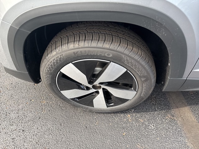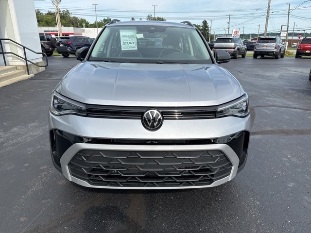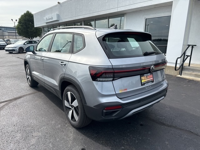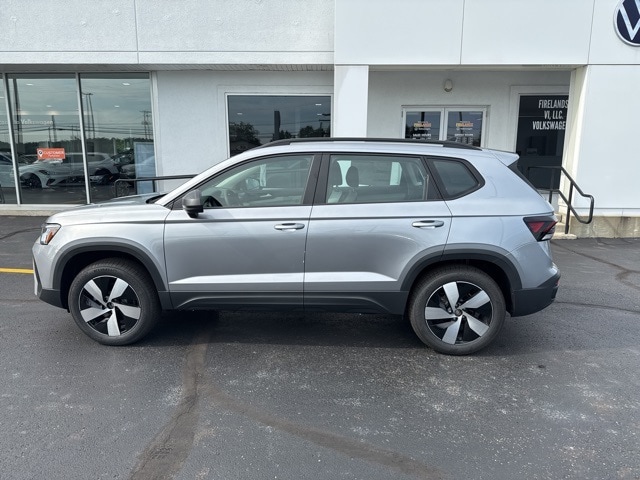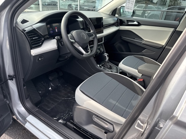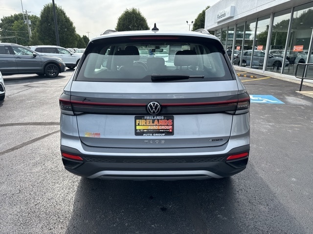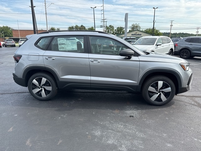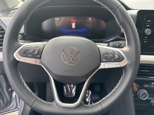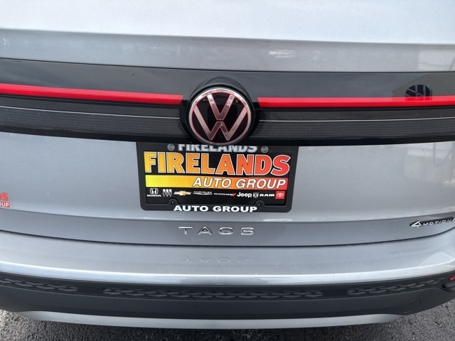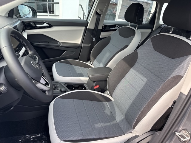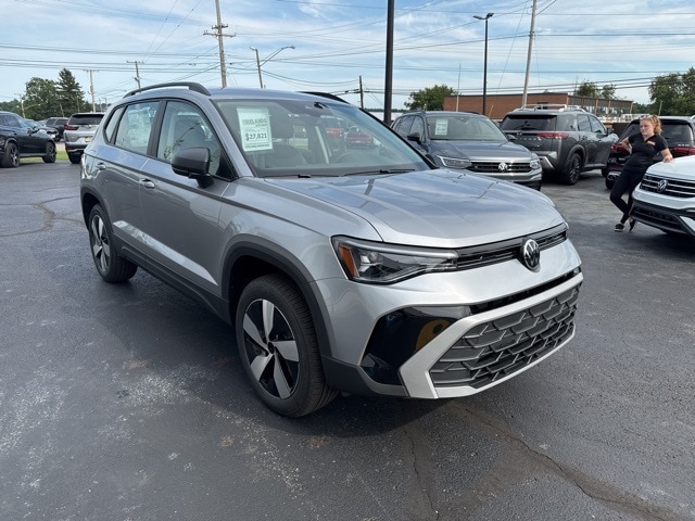 Pyrite Silver Metallic 2025 Volkswagen Taos 1.5T S HTD SEATS & AWD AWD 8-Speed Automatic with Tiptronic 1.5L I4 Turbocharged DOHC 16V LEV3-SULEV30 174hp 4WD/4X4/AWD, Heated Seats, Heated Steering Wheel, CarPlay, Android Auto, Bluetooth, Backup Camera, Rain Sensing Wipers, Blind Spot Monitoring, Adaptive Cruise Control, Lane Departure Warning, Brake Assist, Steering Wheel Controls, Cruise Control, Keyless Start, Keyless Entry, Satellite Radio, Premium/Alloy Wheels, 4D Sport Utility, 1.5L I4 Turbocharged DOHC 16V LEV3-SULEV30 174hp, ABS brakes, Active Blind Spot Monitor, Active Cruise Control, Air Conditioning, AM/FM radio, Auto High-beam Headlights, Brake assist, Bumpers: body-color, Cloth Seating Surfaces, Compass, Driver vanity mirror, Dual front impact airbags, Dual front side impact airbags, Electronic Stability Control, Emergency communication system: VW Car-Net Safe & Secure 5-year, Exterior Parking Camera Rear, First Aid Kit, Front anti-roll bar, Front Bucket Seats, Front Strut Rear Multi-Link Suspension, Fully automatic headlights, Heated Front Bucket Seats, Heated front seats, Heated steering wheel, Illuminated entry, Leather Shift Knob, Low tire pressure warning, Outside temperature display, Overhead airbag, Passenger door bin, Passenger vanity mirror, Radio data system, Radio: MIB3 Composition Color AM/FM, Rain sensing wipers, Rear anti-roll bar, Remote keyless entry, Roadside Assistance Kit, Speed-sensing steering, Split folding rear seat, Spoiler, Steering wheel mounted audio controls, Tachometer, Trip computer, Variably intermittent wipers, VW Care, Wheels: 18" 2-Tone Machined Alloy.