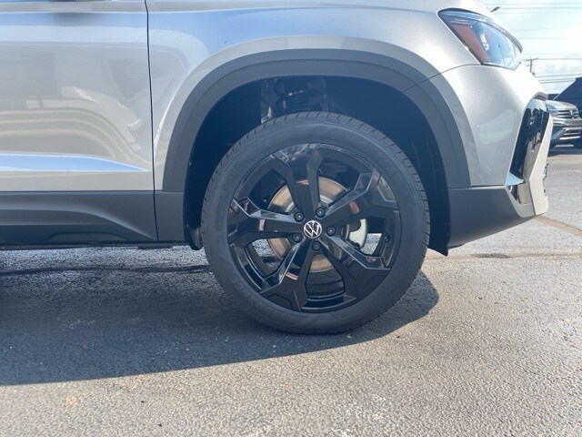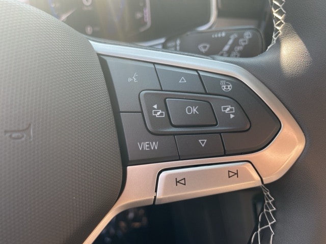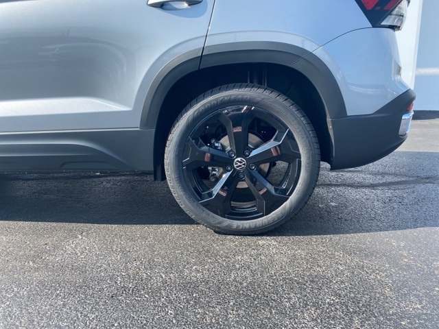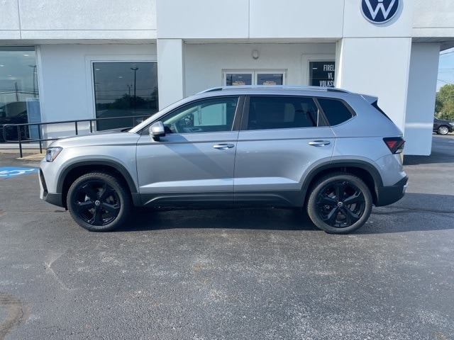 Pyrite Silver Metallic 2025 Volkswagen Taos 1.5T SEL HTD SEATS & NAV AWD 8-Speed Automatic with Tiptronic 1.5L I4 Turbocharged DOHC 16V LEV3-SULEV30 174hp 4WD/4X4/AWD, Leather Seats, Heated Seats, Heated Steering Wheel, Sunroof/Moonroof, Panoramic Roof, Remote Start, Navigation System, CarPlay, Android Auto, Bluetooth, Backup Camera, Rain Sensing Wipers, Blind Spot Monitoring, Adaptive Cruise Control, Lane Departure Warning, Parking Sensors, Brake Assist, Steering Wheel Controls, Keyless Start, Keyless Entry, Power Lift Gate, Satellite Radio, 1.5L I4 Turbocharged DOHC 16V LEV3-SULEV30 174hp, AWD, ABS brakes, Active Blind Spot Monitor, AM/FM radio: SiriusXM with 360L, Auto-Dimming Rearview Mirror w/HomeLink Connect, Automatic temperature control, Brake assist, Dual front impact airbags, Electronic Stability Control, Emergency communication system: VW Car-Net Safe & Secure 5-year, Exterior Parking Camera Rear, First Aid Kit, Front Bucket Seats, Front dual zone A/C, Front Strut Rear Multi-Link Suspension, Fully automatic headlights, Heated & Actively Ventilated Front Bucket Seats, Heated door mirrors, Heated front seats, Heated steering wheel, Illuminated entry, Leather Shift Knob, Low tire pressure warning, Navigation system: VW Car-Net Guide & Inform, Overhead airbag, Perforated Vienna Leather Seating Surfaces, Power driver seat, Power moonroof, Power windows, Radio data system, Radio: MIB3 Discover Media AM/FM/HD, Rain sensing wipers, Rear anti-roll bar, Rear window defroster, Remote keyless entry, Rubber Mats Kit, Speed control, Speed-sensing steering, Spoiler, Steering wheel mounted audio controls, Ventilated front seats, VW Care, Wheels: 19" 2-Tone Machined Alloy, Wheels: 19" Black Painted Alloy.