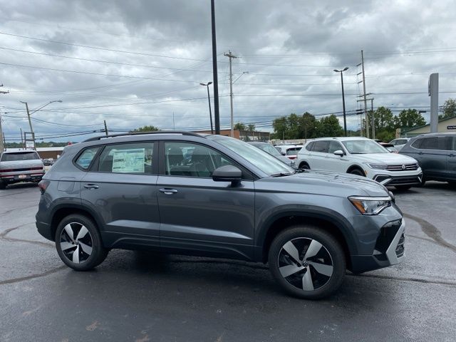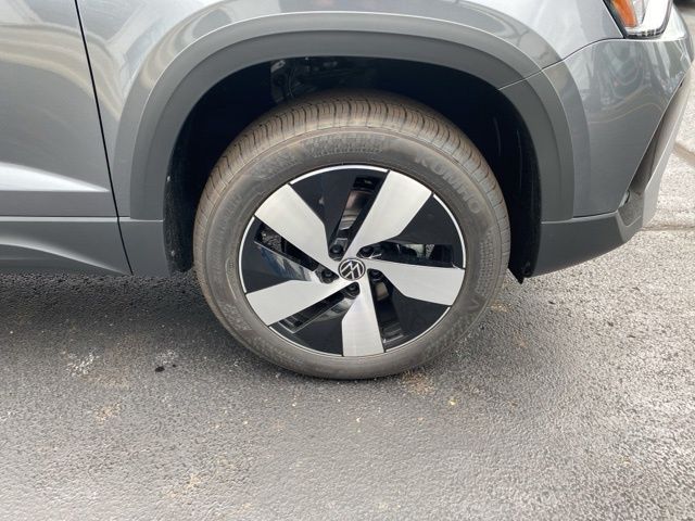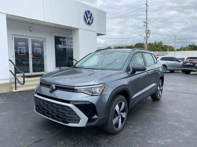 Platinum Gray Metallic 2025 Volkswagen Taos 1.5T S HTD SEATS & AWD AWD 8-Speed Automatic with Tiptronic 1.5L I4 Turbocharged DOHC 16V LEV3-SULEV30 174hp 4WD/4X4/AWD, Heated Seats, Heated Steering Wheel, CarPlay, Android Auto, Bluetooth, Backup Camera, Rain Sensing Wipers, Blind Spot Monitoring, Adaptive Cruise Control, Lane Departure Warning, Brake Assist, Keyless Start, Keyless Entry, Satellite Radio, Premium/Alloy Wheels, 4D Sport Utility, AWD, 6 Speakers, Active Blind Spot Monitor, AM/FM radio, Auto High-beam Headlights, Brake assist, Cloth Seating Surfaces, Compass, Driver vanity mirror, Dual front impact airbags, Dual front side impact airbags, Electronic Stability Control, Emergency communication system: VW Car-Net Safe & Secure 5-year, Exterior Parking Camera Rear, First Aid Kit, Front Bucket Seats, Front Center Armrest, Front Strut Rear Multi-Link Suspension, Fully automatic headlights, Heated door mirrors, Heated Front Bucket Seats, Heated steering wheel, Illuminated entry, Leather Shift Knob, Low tire pressure warning, Occupant sensing airbag, Overhead airbag, Passenger vanity mirror, Radio: MIB3 Composition Color AM/FM, Rain sensing wipers, Rear anti-roll bar, Rear seat center armrest, Rear window defroster, Remote keyless entry, Roadside Assistance Kit, Rubber Mats Kit, Speed control, Speed-sensing steering, Split folding rear seat, Spoiler, Steering wheel mounted audio controls, Telescoping steering wheel, Tilt steering wheel, VW Care, Wheels: 18" 2-Tone Machined Alloy.
