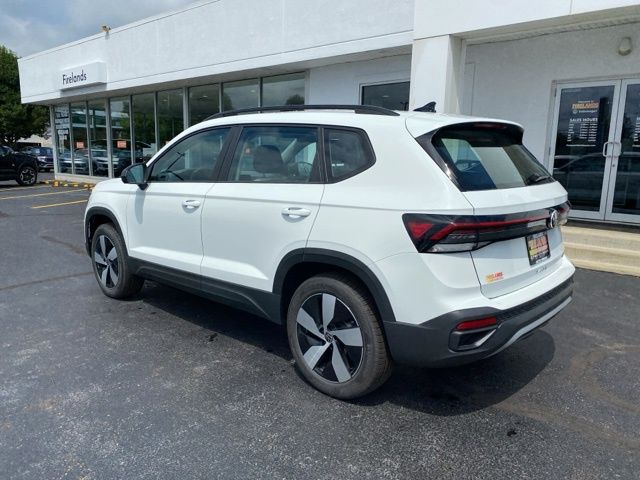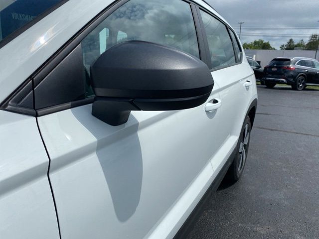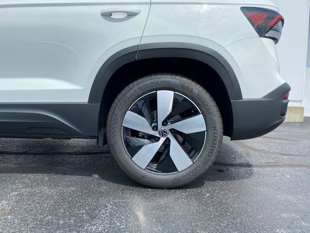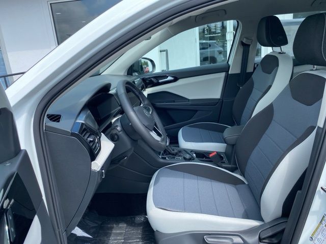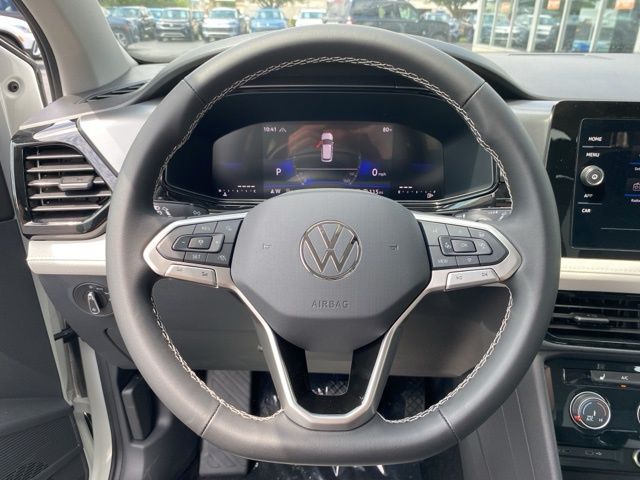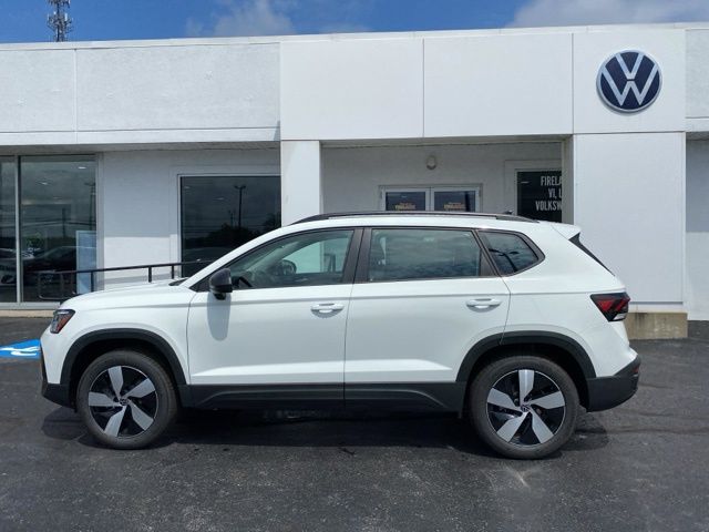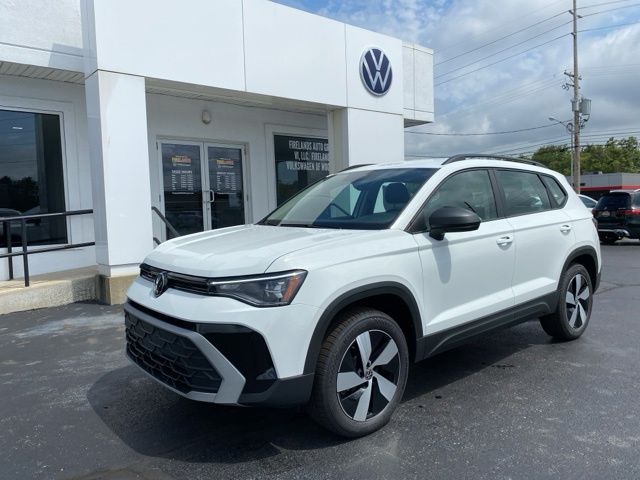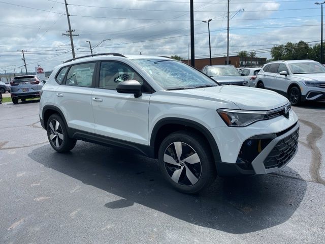 Pure White 2025 Volkswagen Taos 1.5T S AWD & HTD SEATS AWD 8-Speed Automatic with Tiptronic 1.5L I4 Turbocharged DOHC 16V LEV3-SULEV30 174hp 4WD/4X4/AWD, Heated Seats, Heated Steering Wheel, CarPlay, Android Auto, Bluetooth, Backup Camera, Rain Sensing Wipers, Blind Spot Monitoring, Adaptive Cruise Control, Lane Departure Warning, Brake Assist, Steering Wheel Controls, Cruise Control, Keyless Start, Keyless Entry, Satellite Radio, Premium/Alloy Wheels, 1.5L I4 Turbocharged DOHC 16V LEV3-SULEV30 174hp, AWD, 6 Speakers, Active Blind Spot Monitor, AM/FM radio, Auto High-beam Headlights, Brake assist, Bumpers: body-color, Cloth Seating Surfaces, Compass, Driver vanity mirror, Dual front side impact airbags, Electronic Stability Control, Emergency communication system: VW Car-Net Safe & Secure 5-year, Exterior Parking Camera Rear, First Aid Kit, Front Bucket Seats, Front Strut Rear Multi-Link Suspension, Fully automatic headlights, Heated door mirrors, Heated Front Bucket Seats, Heated front seats, Heated steering wheel, Illuminated entry, Leather Shift Knob, Low tire pressure warning, Occupant sensing airbag, Overhead console, Passenger vanity mirror, Radio: MIB3 Composition Color AM/FM, Rain sensing wipers, Rear seat center armrest, Rear window defroster, Remote keyless entry, Roadside Assistance Kit, Rubber Mats Kit, Speed control, Speed-sensing steering, Spoiler, Steering wheel mounted audio controls, Telescoping steering wheel, Tilt steering wheel, Trip computer, VW Care, Wheels: 18" 2-Tone Machined Alloy.