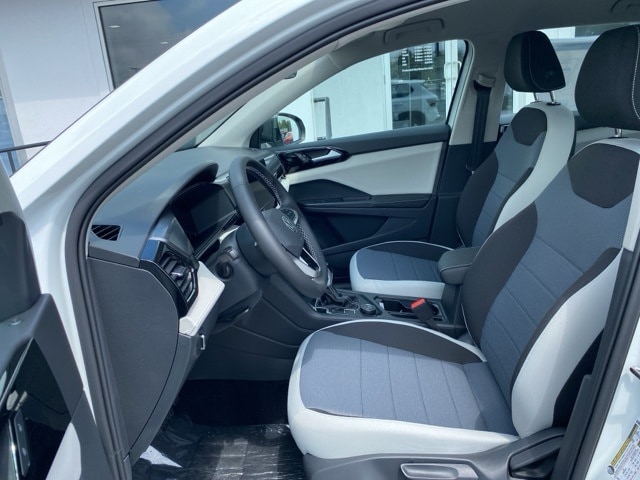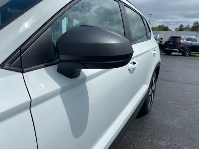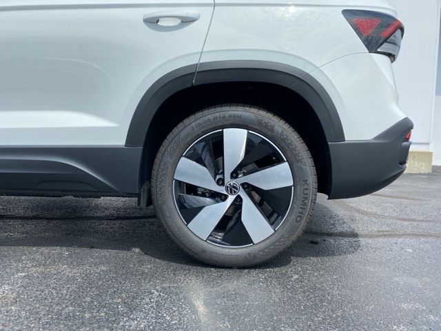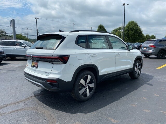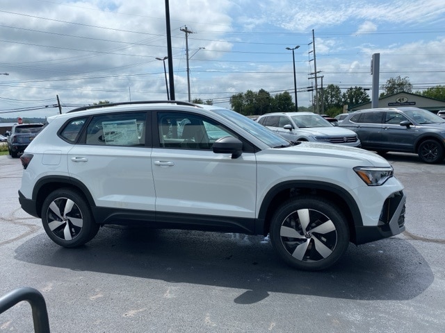 Pure White 2025 Volkswagen Taos 1.5T S AWD & HTD SEATS AWD 8-Speed Automatic with Tiptronic 1.5L I4 Turbocharged DOHC 16V LEV3-SULEV30 174hp 4WD/4X4/AWD, Heated Seats, Heated Steering Wheel, CarPlay, Android Auto, Bluetooth, Backup Camera, Rain Sensing Wipers, Blind Spot Monitoring, Adaptive Cruise Control, Lane Departure Warning, Brake Assist, Steering Wheel Controls, Cruise Control, Keyless Start, Keyless Entry, Satellite Radio, Premium/Alloy Wheels, 1.5L I4 Turbocharged DOHC 16V LEV3-SULEV30 174hp, AWD, Active Blind Spot Monitor, Auto High-beam Headlights, Brake assist, Bumpers: body-color, Cloth Seating Surfaces, Compass, Driver vanity mirror, Dual front side impact airbags, Electronic Stability Control, Emergency communication system: VW Car-Net Safe & Secure 5-year, Exterior Parking Camera Rear, First Aid Kit, Front Bucket Seats, Front Strut Rear Multi-Link Suspension, Fully automatic headlights, Heated door mirrors, Heated Front Bucket Seats, Heated front seats, Heated steering wheel, Illuminated entry, Leather Shift Knob, Low tire pressure warning, Occupant sensing airbag, Overhead console, Passenger vanity mirror, Radio: MIB3 Composition Color AM/FM, Rain sensing wipers, Rear seat center armrest, Remote keyless entry, Roadside Assistance Kit, Rubber Mats Kit, Speed control, Speed-sensing steering, Spoiler, Steering wheel mounted audio controls, Telescoping steering wheel, Tilt steering wheel, Trip computer, VW Care, Wheels: 18" 2-Tone Machined Alloy.