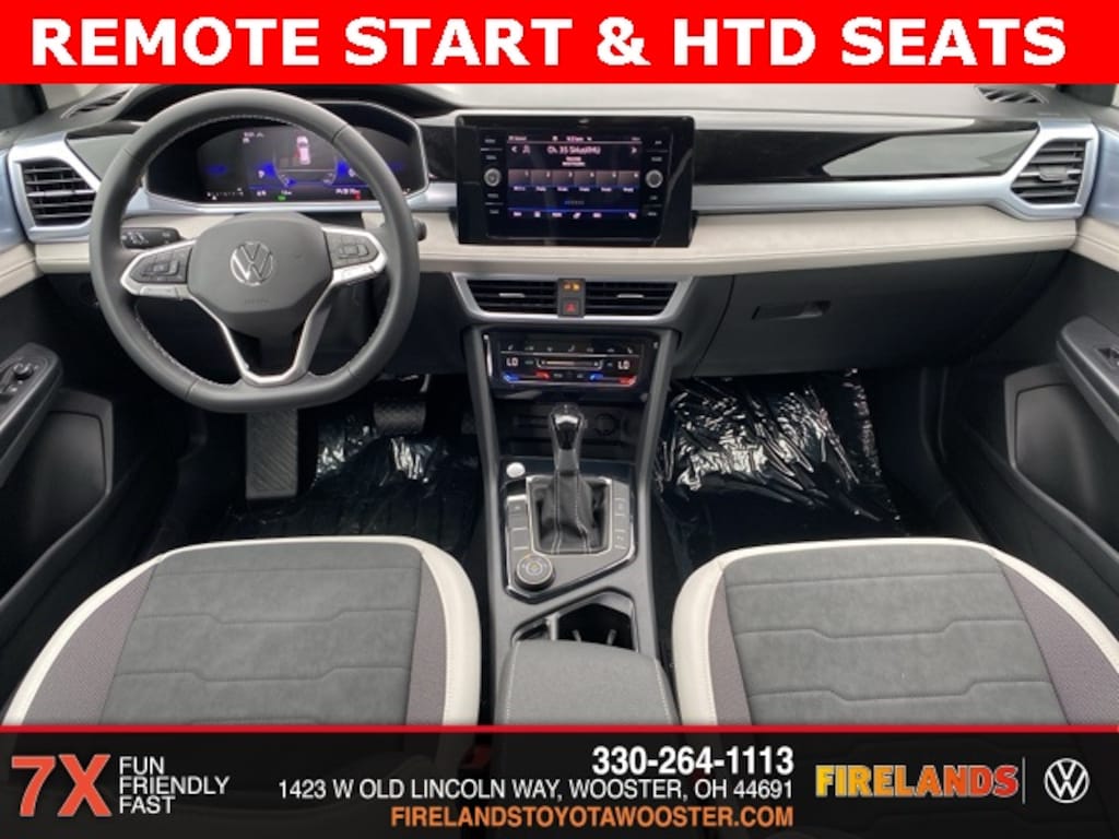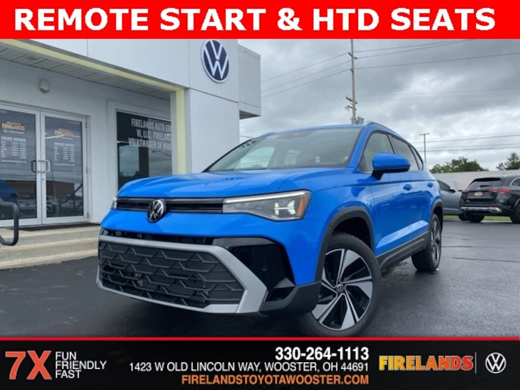 Cornflower Blue 2025 Volkswagen Taos 1.5T SE REMOTE START & HTD SEATS AWD 8-Speed Automatic with Tiptronic 1.5L I4 Turbocharged DOHC 16V LEV3-SULEV30 174hp 4WD/4X4/AWD, Heated Seats, Heated Steering Wheel, Remote Start, CarPlay, Android Auto, Bluetooth, Backup Camera, Rain Sensing Wipers, Blind Spot Monitoring, Adaptive Cruise Control, Lane Departure Warning, Parking Sensors, Brake Assist, Steering Wheel Controls, Cruise Control, Keyless Start, Keyless Entry, Power Lift Gate, Premium Audio, Satellite Radio, Premium/Alloy Wheels, 4D Sport Utility, AWD, ABS brakes, Active Blind Spot Monitor, Active Cruise Control, AM/FM radio: SiriusXM with 360L, Auto High-beam Headlights, Automatic temperature control, Brake assist, CloudTex & Cloth Seating Surfaces, Compass, Electronic Stability Control, Emergency communication system: VW Car-Net Safe & Secure 5-year, Exterior Parking Camera Rear, First Aid Kit, Front Bucket Seats, Front dual zone A/C, Front Strut Rear Multi-Link Suspension, Fully automatic headlights, Heated Front Bucket Seats, Heated front seats, Heated steering wheel, Illuminated entry, Leather Shift Knob, Low tire pressure warning, Panoramic Sunroof Package, Power driver seat, Power windows, Radio data system, Radio: MIB3 Composition Media AM/FM/HD, Rain sensing wipers, Remote keyless entry, Roadside Assistance Kit, Security system, Speed-sensing steering, Spoiler, Steering wheel mounted audio controls, Tachometer, Tilt steering wheel, Traction control, Trip computer, VW Care, Wheels: 18" 2-Tone Machined Alloy.