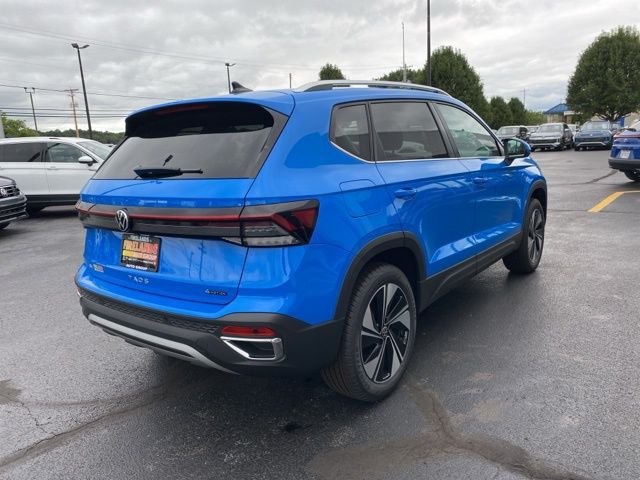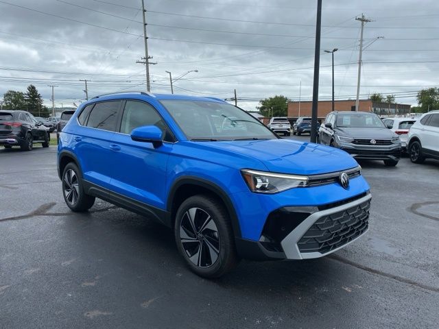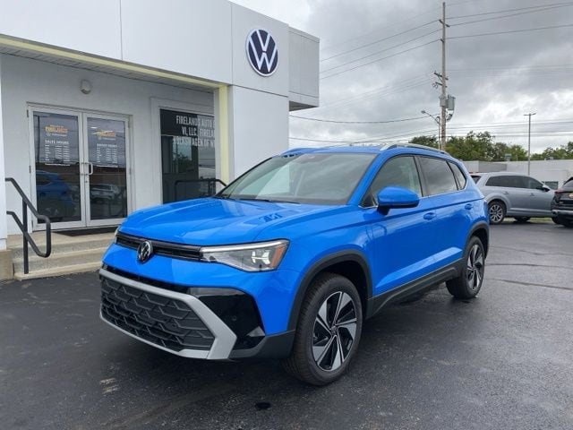 Cornflower Blue 2025 Volkswagen Taos 1.5T SE REMOTE START & HTD SEATS AWD 8-Speed Automatic with Tiptronic 1.5L I4 Turbocharged DOHC 16V LEV3-SULEV30 174hp 4WD/4X4/AWD, Heated Seats, Heated Steering Wheel, Remote Start, CarPlay, Android Auto, Bluetooth, Backup Camera, Rain Sensing Wipers, Blind Spot Monitoring, Adaptive Cruise Control, Lane Departure Warning, Parking Sensors, Brake Assist, Steering Wheel Controls, Cruise Control, Keyless Start, Keyless Entry, Power Lift Gate, Premium Audio, Satellite Radio, Premium/Alloy Wheels, 4D Sport Utility, AWD, ABS brakes, Active Blind Spot Monitor, Active Cruise Control, Alloy wheels, AM/FM radio: SiriusXM with 360L, Auto High-beam Headlights, Automatic temperature control, Brake assist, CloudTex & Cloth Seating Surfaces, Compass, Driver vanity mirror, Electronic Stability Control, Emergency communication system: VW Car-Net Safe & Secure 5-year, Exterior Parking Camera Rear, First Aid Kit, Front anti-roll bar, Front Bucket Seats, Front dual zone A/C, Front Strut Rear Multi-Link Suspension, Fully automatic headlights, Heated door mirrors, Heated Front Bucket Seats, Heated front seats, Heated steering wheel, Illuminated entry, Leather Shift Knob, Low tire pressure warning, Overhead airbag, Overhead console, Panoramic Sunroof Package, Passenger vanity mirror, Power driver seat, Power windows, Radio data system, Radio: MIB3 Composition Media AM/FM/HD, Rain sensing wipers, Rear anti-roll bar, Remote keyless entry, Roadside Assistance Kit, Security system, Speed-sensing steering, Spoiler, Steering wheel mounted audio controls, Tachometer, Tilt steering wheel, Traction control, Trip computer, VW Care, Wheels: 18" 2-Tone Machined Alloy.