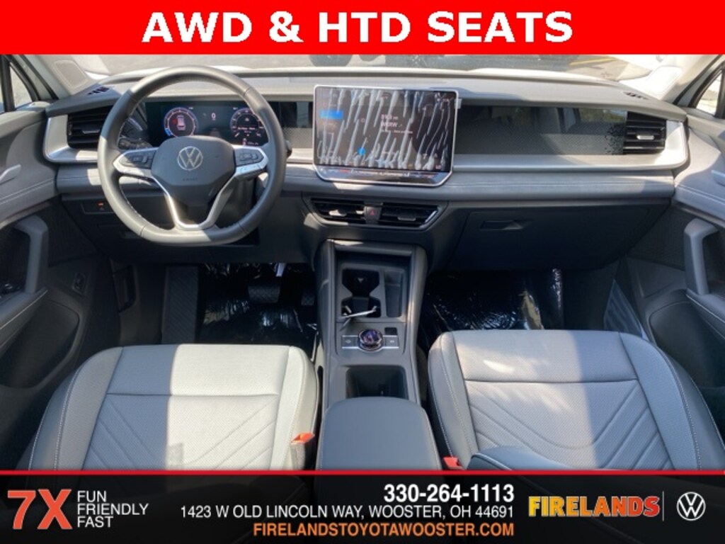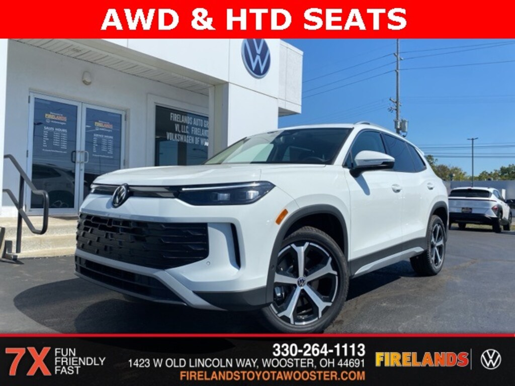 Pure White 2025 Volkswagen Tiguan 2.0T SE AWD & HTD SEATS AWD 8-Speed Automatic 2.0L TSI DOHC 4WD/4X4/AWD, Heated Seats, Remote Start, CarPlay, Android Auto, Bluetooth, Backup Camera, Rain Sensing Wipers, Blind Spot Monitoring, Adaptive Cruise Control, Lane Departure Warning, Parking Sensors, Brake Assist, Steering Wheel Controls, Keyless Start, Keyless Entry, Power Lift Gate, Satellite Radio, Premium/Alloy Wheels, 4D Sport Utility, AWD, ABS brakes, AM/FM radio: SiriusXM with 360L, Auto-dimming Rear-View mirror, Auto-Dimming Rearview Mirror w/HomeLink Connect, Automatic temperature control, Brake assist, Compass, Dual front side impact airbags, Emergency communication system: VW Car-Net Safe & Secure 5-year, Exterior Parking Camera Rear, First Aid Kit, Four wheel independent suspension, Front Bucket Seats, Front dual zone A/C, Fully automatic headlights, Heated Front Seats, Heavy Duty Trunk Liner w/VW CarGo Blocks, Illuminated entry, Leather Shift Knob, Low tire pressure warning, Overhead airbag, Panoramic Sunroof Package, Perforated V-Tex Leatherette Seating Surfaces, Power driver seat, Power Liftgate, Power steering, Radio: MIB4 Composition Media Touchscreen AM/FM, Rain sensing wipers, Remote keyless entry, Roadside Assistance Kit, Rubber Monster Mats Kit (Set of 4), Spoiler, Steering wheel mounted audio controls, Traction control, VW Care, Wheels: 19" 2-Tone Machined Alloy.