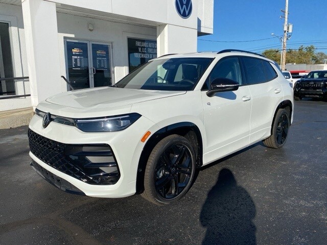 Opal White Pearl 2025 Volkswagen Tiguan 2.0T SE R-Line Black HTD SEATS & SUNROOF FWD 8-Speed Automatic 2.0L TSI DOHC Heated Seats, Sunroof/Moonroof, Panoramic Roof, Remote Start, CarPlay, Android Auto, Bluetooth, Backup Camera, Rain Sensing Wipers, Blind Spot Monitoring, Adaptive Cruise Control, Lane Departure Warning, Parking Sensors, Brake Assist, Steering Wheel Controls, Cruise Control, Keyless Start, Keyless Entry, Power Lift Gate, Satellite Radio, Premium/Alloy Wheels, Tiguan 2.0T SE R-Line Black HTD SEATS & SUNROOF, 4D Sport Utility, 4-Wheel Independent Suspension, 7 Speakers, ABS brakes, Active Cruise Control, Alloy wheels, AM/FM radio: SiriusXM with 360L, Brake assist, Compass, Delay-off headlights, Dual front side impact airbags, Electronic Stability Control, Emergency communication system: VW Car-Net Safe & Secure 5-year, Exterior Parking Camera Rear, Four wheel independent suspension, Front anti-roll bar, Front dual zone A/C, Fully automatic headlights, Heads-Up Display, Heated door mirrors, Heated Front Seats, Heated front seats, Illuminated entry, Knee airbag, Low tire pressure warning, Overhead airbag, Power driver seat, Power Liftgate, Power moonroof, Power windows, Radio: MIB4 Composition Media Touchscreen AM/FM, Rear anti-roll bar, Rear side impact airbag, Remote keyless entry, Spoiler, Steering wheel mounted audio controls, Traction control, Turn signal indicator mirrors.