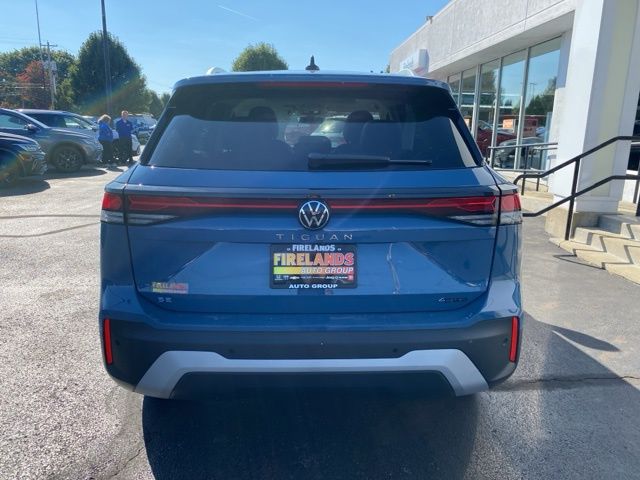 Monterey Blue Pearl 2025 Volkswagen Tiguan 2.0T SE AWD & HTD SEATS AWD 8-Speed Automatic 2.0L TSI DOHC 4WD/4X4/AWD, Heated Seats, CarPlay, Android Auto, Bluetooth, Backup Camera, Rain Sensing Wipers, Blind Spot Monitoring, Adaptive Cruise Control, Lane Departure Warning, Parking Sensors, Brake Assist, Steering Wheel Controls, Cruise Control, Keyless Start, Keyless Entry, Power Lift Gate, Satellite Radio, Premium/Alloy Wheels, 4D Sport Utility, AWD, ABS brakes, AM/FM radio: SiriusXM with 360L, Auto High-beam Headlights, Auto-dimming Rear-View mirror, Automatic temperature control, Brake assist, Compass, Driver vanity mirror, Dual front impact airbags, Dual front side impact airbags, Emergency communication system: VW Car-Net Safe & Secure 5-year, Exterior Parking Camera Rear, First Aid Kit, Four wheel independent suspension, Front anti-roll bar, Front Bucket Seats, Front dual zone A/C, Fully automatic headlights, Heated door mirrors, Heated Front Seats, Heavy Duty Trunk Liner w/VW CarGo Blocks, Illuminated entry, Leather Shift Knob, Low tire pressure warning, Outside temperature display, Overhead airbag, Panic alarm, Panoramic Sunroof Package, Perforated V-Tex Leatherette Seating Surfaces, Power driver seat, Power Liftgate, Power steering, Radio: MIB4 Composition Media Touchscreen AM/FM, Rain sensing wipers, Rear anti-roll bar, Rear reading lights, Rear side impact airbag, Remote keyless entry, Roadside Assistance Kit, Rubber Monster Mats Kit (Set of 4), Security system, Speed control, Speed-sensing steering, Spoiler, Steering wheel mounted audio controls, Telescoping steering wheel, Tilt steering wheel, Traction control, Variably intermittent wipers, VW Care, Wheels: 19" 2-Tone Machined Alloy.