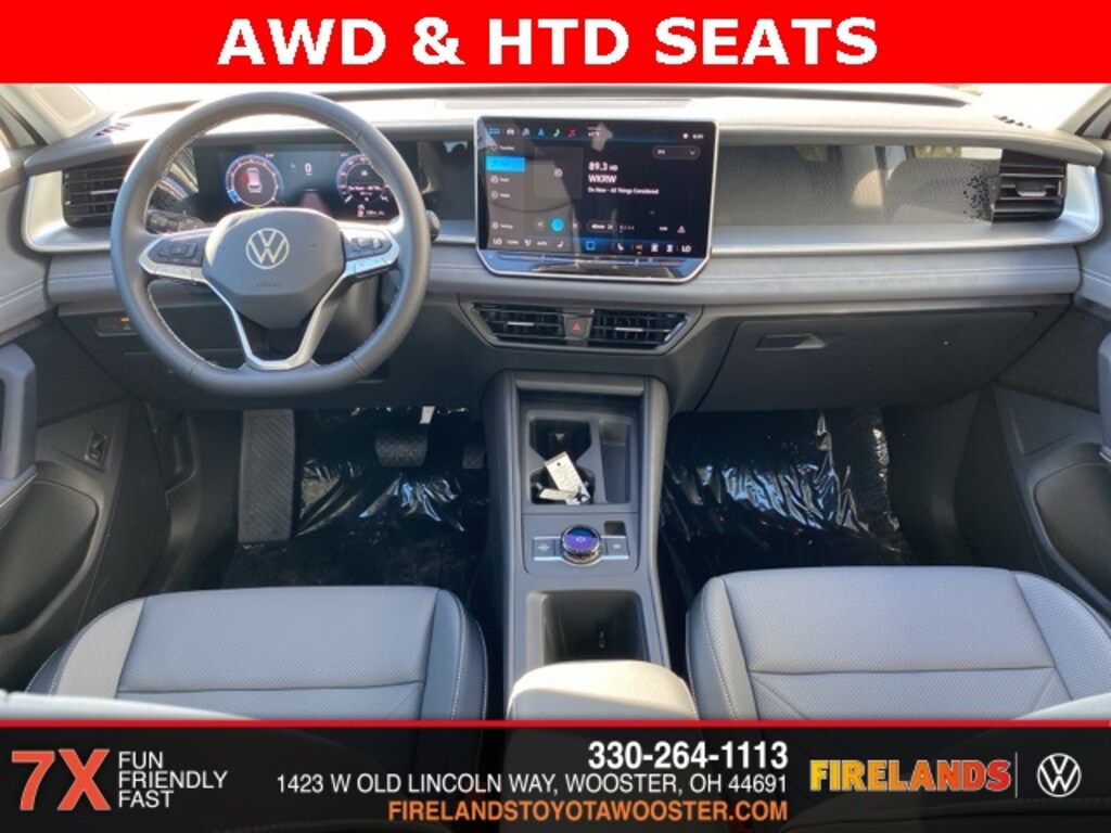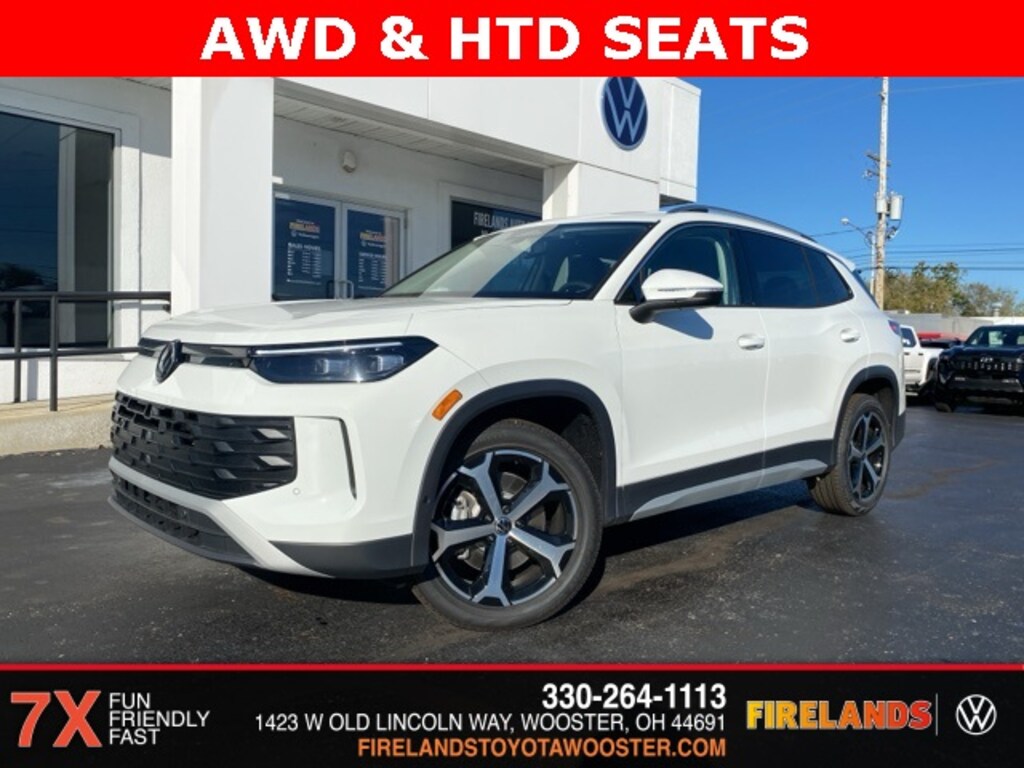 Pure White 2025 Volkswagen Tiguan 2.0T SE AWD & HTD SEATS AWD 8-Speed Automatic 2.0L TSI DOHC 4WD/4X4/AWD, Heated Seats, Remote Start, CarPlay, Android Auto, Bluetooth, Backup Camera, Rain Sensing Wipers, Blind Spot Monitoring, Adaptive Cruise Control, Lane Departure Warning, Parking Sensors, Brake Assist, Steering Wheel Controls, Cruise Control, Keyless Start, Keyless Entry, Power Lift Gate, Premium/Alloy Wheels, Tiguan 2.0T SE AWD & HTD SEATS, AWD, 7 Speakers, AM/FM radio: SiriusXM with 360L, Auto-dimming Rear-View mirror, Auto-Dimming Rearview Mirror w/HomeLink Connect, Automatic temperature control, Brake assist, Compass, Delay-off headlights, Dual front impact airbags, Dual front side impact airbags, Emergency communication system: VW Car-Net Safe & Secure 5-year, Exterior Parking Camera Rear, First Aid Kit, Four wheel independent suspension, Front Bucket Seats, Front dual zone A/C, Fully automatic headlights, Heated Front Seats, Heavy Duty Trunk Liner w/VW CarGo Blocks, Illuminated entry, Leather Shift Knob, Low tire pressure warning, Outside temperature display, Overhead airbag, Panoramic Sunroof Package, Perforated V-Tex Leatherette Seating Surfaces, Power driver seat, Power Liftgate, Power windows, Radio: MIB4 Composition Media Touchscreen AM/FM, Rain sensing wipers, Rear window defroster, Remote keyless entry, Roadside Assistance Kit, Rubber Monster Mats Kit (Set of 4), Speed-sensing steering, Spoiler, Steering wheel mounted audio controls, Turn signal indicator mirrors, VW Care, Wheels: 19" 2-Tone Machined Alloy.