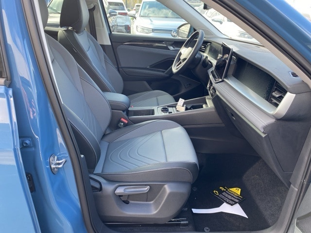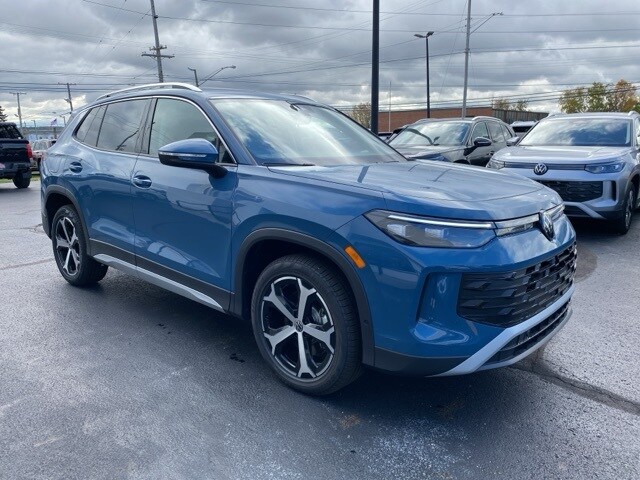 Monterey Blue Pearl 2025 Volkswagen Tiguan 2.0T SE AWD & HTD SEATS AWD 8-Speed Automatic 2.0L TSI DOHC 4WD/4X4/AWD, Heated Seats, Remote Start, CarPlay, Android Auto, Bluetooth, Backup Camera, Rain Sensing Wipers, Blind Spot Monitoring, Adaptive Cruise Control, Lane Departure Warning, Parking Sensors, Brake Assist, Steering Wheel Controls, Cruise Control, Keyless Start, Keyless Entry, Power Lift Gate, Premium/Alloy Wheels, Tiguan 2.0T SE AWD & HTD SEATS, AWD, 4-Wheel Independent Suspension, 7 Speakers, ABS brakes, AM/FM radio: SiriusXM with 360L, Auto High-beam Headlights, Auto-dimming Rear-View mirror, Auto-Dimming Rearview Mirror w/HomeLink Connect, Automatic temperature control, Brake assist, Compass, Driver vanity mirror, Dual front impact airbags, Electronic Stability Control, Emergency communication system: VW Car-Net Safe & Secure 5-year, Exterior Parking Camera Rear, First Aid Kit, Front anti-roll bar, Front Bucket Seats, Front dual zone A/C, Fully automatic headlights, Heated Front Seats, Heavy Duty Trunk Liner w/VW CarGo Blocks, Illuminated entry, Knee airbag, Leather Shift Knob, Low tire pressure warning, Outside temperature display, Overhead airbag, Panoramic Sunroof Package, Perforated V-Tex Leatherette Seating Surfaces, Power driver seat, Power Liftgate, Power steering, Radio: MIB4 Composition Media Touchscreen AM/FM, Rain sensing wipers, Rear anti-roll bar, Remote keyless entry, Roadside Assistance Kit, Rubber Monster Mats Kit (Set of 4), Speed-sensing steering, Spoiler, Steering wheel mounted audio controls, Traction control, Turn signal indicator mirrors, VW Care, Wheels: 19" 2-Tone Machined Alloy.