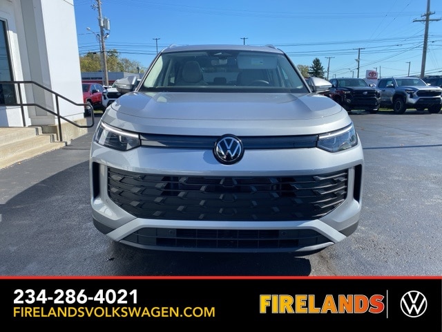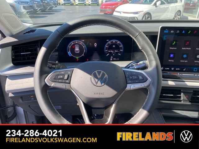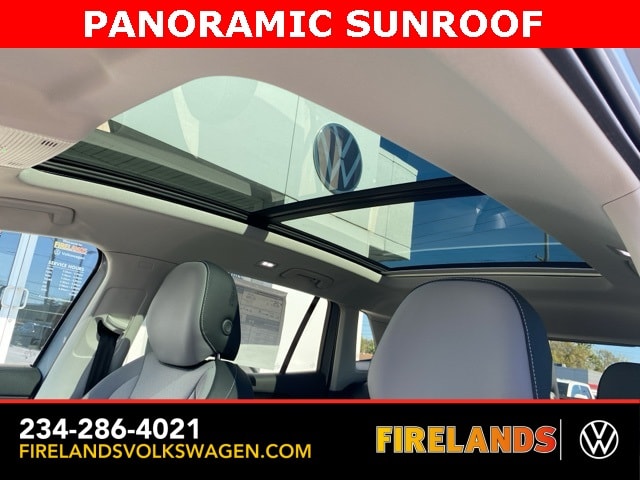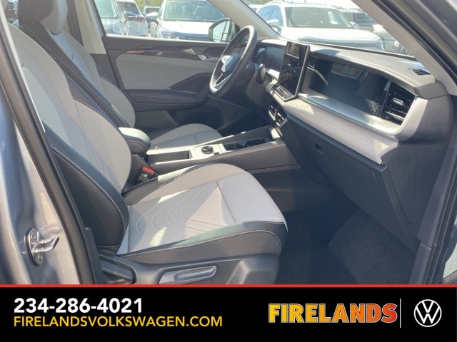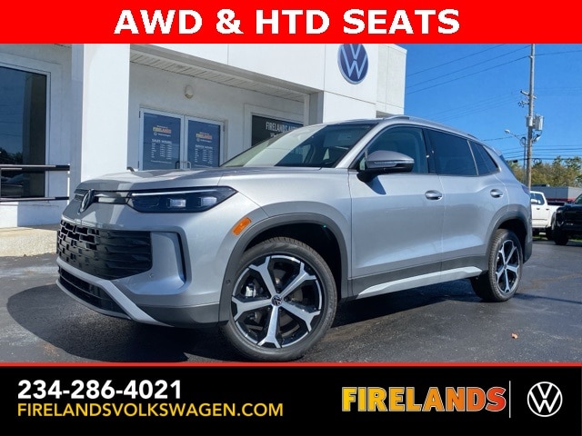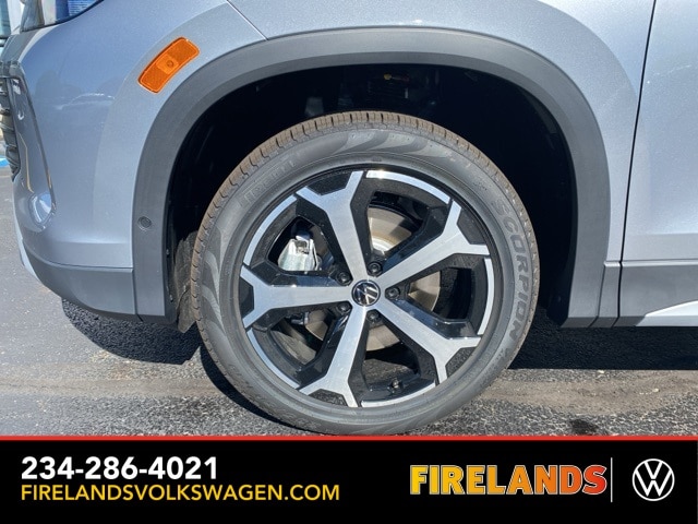 Pyrite Silver Metallic 2025 Volkswagen Tiguan 2.0T SE AWD & HTD SEATS AWD 8-Speed Automatic 2.0L TSI DOHC 4WD/4X4/AWD, Heated Seats, Remote Start, CarPlay, Android Auto, Bluetooth, Backup Camera, Rain Sensing Wipers, Blind Spot Monitoring, Adaptive Cruise Control, Lane Departure Warning, Parking Sensors, Brake Assist, Steering Wheel Controls, Cruise Control, Keyless Start, Keyless Entry, Power Lift Gate, Satellite Radio, Premium/Alloy Wheels, 4D Sport Utility, AWD, 4-Wheel Independent Suspension, 7 Speakers, ABS brakes, AM/FM radio: SiriusXM with 360L, Auto-dimming Rear-View mirror, Auto-Dimming Rearview Mirror w/HomeLink Connect, Automatic temperature control, Brake assist, Compass, Dual front impact airbags, Dual front side impact airbags, Electronic Stability Control, Emergency communication system: VW Car-Net Safe & Secure 5-year, Exterior Parking Camera Rear, First Aid Kit, Four wheel independent suspension, Front anti-roll bar, Front Bucket Seats, Front dual zone A/C, Fully automatic headlights, Heated door mirrors, Heated Front Seats, Heavy Duty Trunk Liner w/VW CarGo Blocks, Illuminated entry, Knee airbag, Leather Shift Knob, Low tire pressure warning, Occupant sensing airbag, Outside temperature display, Overhead airbag, Panoramic Sunroof Package, Perforated V-Tex Leatherette Seating Surfaces, Power driver seat, Power Liftgate, Power windows, Radio: MIB4 Composition Media Touchscreen AM/FM, Rain sensing wipers, Rear anti-roll bar, Remote keyless entry, Roadside Assistance Kit, Rubber Monster Mats Kit (Set of 4), Speed-sensing steering, Spoiler, Steering wheel mounted audio controls, VW Care, Wheels: 19" 2-Tone Machined Alloy.