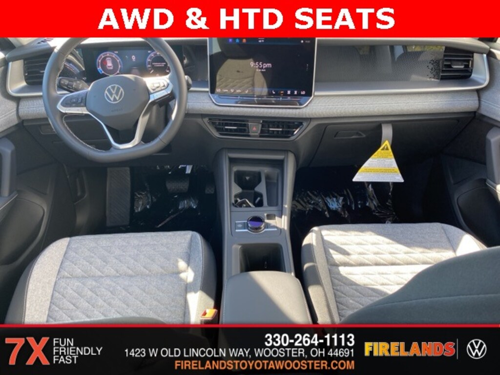 Pyrite Silver Metallic 2025 Volkswagen Tiguan 2.0T S AWD & HTD SEATS AWD 8-Speed Automatic 2.0L TSI DOHC 4WD/4X4/AWD, Heated Seats, CarPlay, Android Auto, Bluetooth, Backup Camera, Rain Sensing Wipers, Blind Spot Monitoring, Adaptive Cruise Control, Lane Departure Warning, Parking Sensors, Brake Assist, Steering Wheel Controls, Cruise Control, Keyless Start, Keyless Entry, Satellite Radio, Premium/Alloy Wheels, 4D Sport Utility, AWD, AM/FM radio: SiriusXM with 360L, Automatic temperature control, Brake assist, Cloth Seating Surfaces, Compass, Delay-off headlights, Driver vanity mirror, Electronic Stability Control, Emergency communication system: VW Car-Net Safe & Secure 5-year, Exterior Parking Camera Rear, First Aid Kit, Front Bucket Seats, Front dual zone A/C, Front reading lights, Fully automatic headlights, Heated door mirrors, Heated Front Seats, Heavy Duty Trunk Liner w/VW CarGo Blocks, Illuminated entry, Leather Shift Knob, Low tire pressure warning, Overhead airbag, Radio: MIB4 Composition Media Touchscreen AM/FM, Rain sensing wipers, Remote keyless entry, Roadside Assistance Kit, Rubber Monster Mats Kit (Set of 4), Speed-sensing steering, Split folding rear seat, Spoiler, Steering wheel mounted audio controls, Tachometer, Traction control, VW Care, Wheels: 17" 2-Tone Machined Alloy.