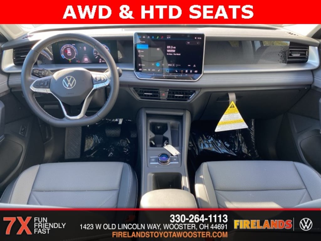 Pyrite Silver Metallic 2025 Volkswagen Tiguan 2.0T SE AWD & HTD SEATS AWD 8-Speed Automatic 2.0L TSI DOHC 4WD/4X4/AWD, Heated Seats, Remote Start, CarPlay, Android Auto, Bluetooth, Backup Camera, Rain Sensing Wipers, Blind Spot Monitoring, Adaptive Cruise Control, Lane Departure Warning, Parking Sensors, Brake Assist, Steering Wheel Controls, Cruise Control, Keyless Start, Keyless Entry, Power Lift Gate, Satellite Radio, Premium/Alloy Wheels, 4D Sport Utility, AWD, ABS brakes, AM/FM radio: SiriusXM with 360L, Auto-dimming Rear-View mirror, Auto-Dimming Rearview Mirror w/HomeLink Connect, Automatic temperature control, Brake assist, Compass, Dual front side impact airbags, Emergency communication system: VW Car-Net Safe & Secure 5-year, Exterior Parking Camera Rear, First Aid Kit, Four wheel independent suspension, Front Bucket Seats, Front dual zone A/C, Fully automatic headlights, Heated Front Seats, Heavy Duty Trunk Liner w/VW CarGo Blocks, Illuminated entry, Leather Shift Knob, Low tire pressure warning, Outside temperature display, Panic alarm, Panoramic Sunroof Package, Perforated V-Tex Leatherette Seating Surfaces, Power driver seat, Power Liftgate, Power windows, Radio: MIB4 Composition Media Touchscreen AM/FM, Rain sensing wipers, Remote keyless entry, Roadside Assistance Kit, Rubber Monster Mats Kit (Set of 4), Speed-sensing steering, Split folding rear seat, Spoiler, Steering wheel mounted audio controls, Traction control, Turn signal indicator mirrors, VW Care, Wheels: 19" 2-Tone Machined Alloy.