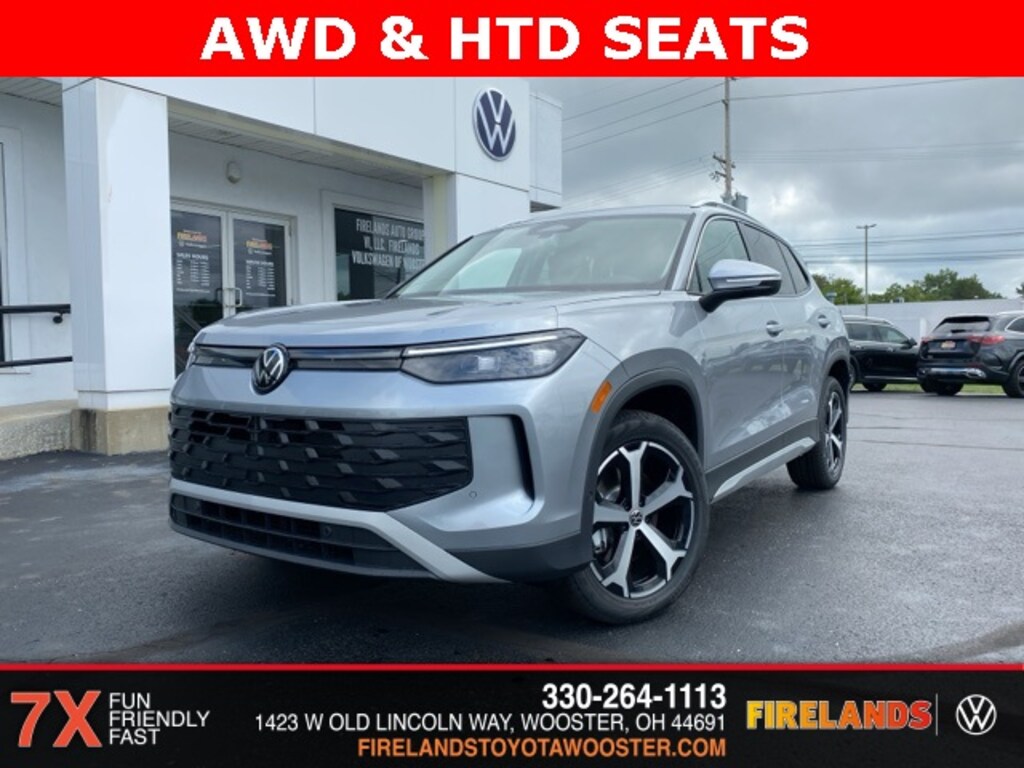 Pyrite Silver Metallic 2025 Volkswagen Tiguan 2.0T SE AWD & HTD SEATS AWD 8-Speed Automatic 2.0L TSI DOHC 4WD/4X4/AWD, Heated Seats, Remote Start, CarPlay, Android Auto, Bluetooth, Backup Camera, Rain Sensing Wipers, Blind Spot Monitoring, Adaptive Cruise Control, Lane Departure Warning, Parking Sensors, Brake Assist, Steering Wheel Controls, Cruise Control, Keyless Start, Keyless Entry, Power Lift Gate, Satellite Radio, Premium/Alloy Wheels, 4D Sport Utility, AWD, ABS brakes, AM/FM radio: SiriusXM with 360L, Auto-dimming Rear-View mirror, Automatic temperature control, Brake assist, Compass, Emergency communication system: VW Car-Net Safe & Secure 5-year, Exterior Parking Camera Rear, First Aid Kit, Front Bucket Seats, Front dual zone A/C, Fully automatic headlights, Heated Front Seats, Heavy Duty Trunk Liner w/VW CarGo Blocks, Illuminated entry, Leather Shift Knob, Low tire pressure warning, Perforated V-Tex Leatherette Seating Surfaces, Power driver seat, Power Liftgate, Power steering, Radio data system, Radio: MIB4 Composition Media Touchscreen AM/FM, Rain sensing wipers, Remote keyless entry, Roadside Assistance Kit, Rubber Monster Mats Kit (Set of 4), Security system, Speed-sensing steering, Spoiler, Steering wheel mounted audio controls, VW Care, Wheels: 19" 2-Tone Machined Alloy.