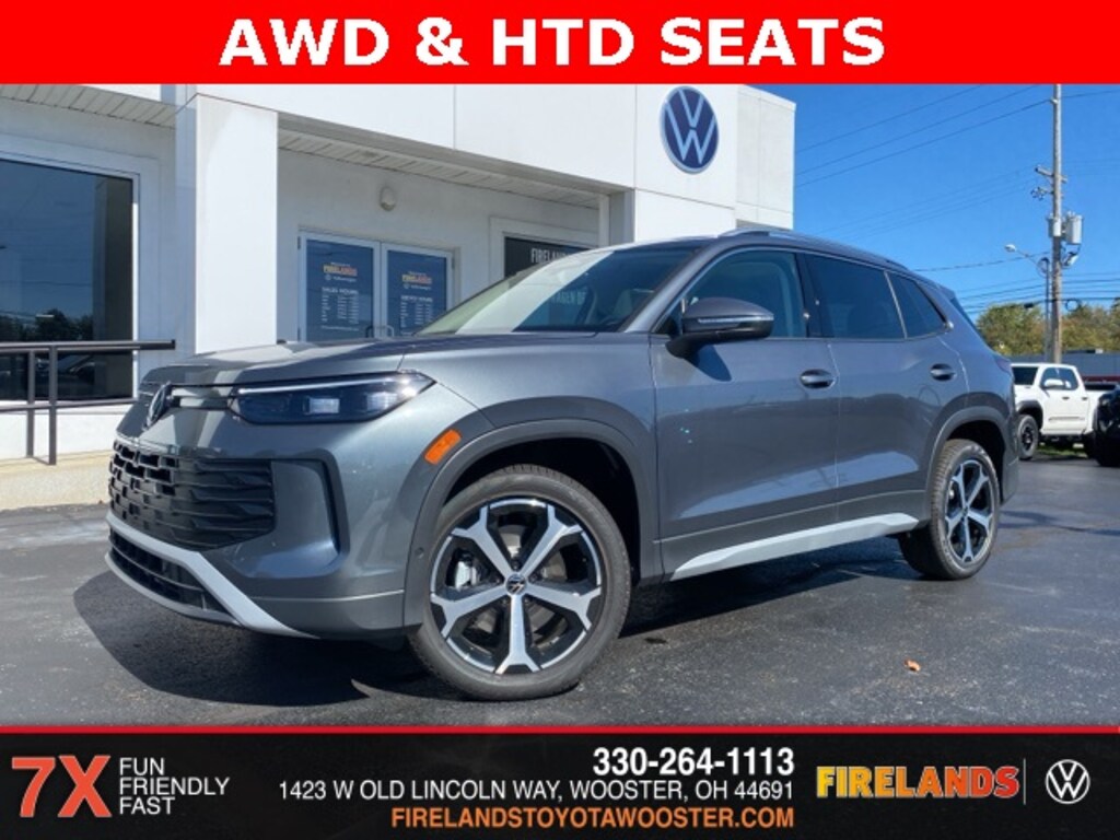 Platinum Gray Metallic 2025 Volkswagen Tiguan 2.0T SE AWD & HTD SEATS AWD 8-Speed Automatic 2.0L TSI DOHC 4WD/4X4/AWD, Heated Seats, Remote Start, CarPlay, Android Auto, Bluetooth, Backup Camera, Rain Sensing Wipers, Blind Spot Monitoring, Adaptive Cruise Control, Lane Departure Warning, Parking Sensors, Brake Assist, Steering Wheel Controls, Cruise Control, Keyless Start, Keyless Entry, Power Lift Gate, Satellite Radio, Premium/Alloy Wheels, Tiguan 2.0T SE AWD & HTD SEATS, 4D Sport Utility, 7 Speakers, AM/FM radio: SiriusXM with 360L, Auto-dimming Rear-View mirror, Auto-Dimming Rearview Mirror w/HomeLink Connect, Automatic temperature control, Brake assist, Dual front impact airbags, Dual front side impact airbags, Emergency communication system: VW Car-Net Safe & Secure 5-year, Exterior Parking Camera Rear, First Aid Kit, Front Bucket Seats, Front dual zone A/C, Fully automatic headlights, Heated Front Seats, Heavy Duty Trunk Liner w/VW CarGo Blocks, Illuminated entry, Leather Shift Knob, Low tire pressure warning, Occupant sensing airbag, Outside temperature display, Panoramic Sunroof Package, Perforated V-Tex Leatherette Seating Surfaces, Power driver seat, Power Liftgate, Radio: MIB4 Composition Media Touchscreen AM/FM, Rain sensing wipers, Rear window defroster, Remote keyless entry, Roadside Assistance Kit, Rubber Monster Mats Kit (Set of 4), Speed control, Speed-sensing steering, Split folding rear seat, Spoiler, Steering wheel mounted audio controls, Traction control, Turn signal indicator mirrors, VW Care, Wheels: 19" 2-Tone Machined Alloy.