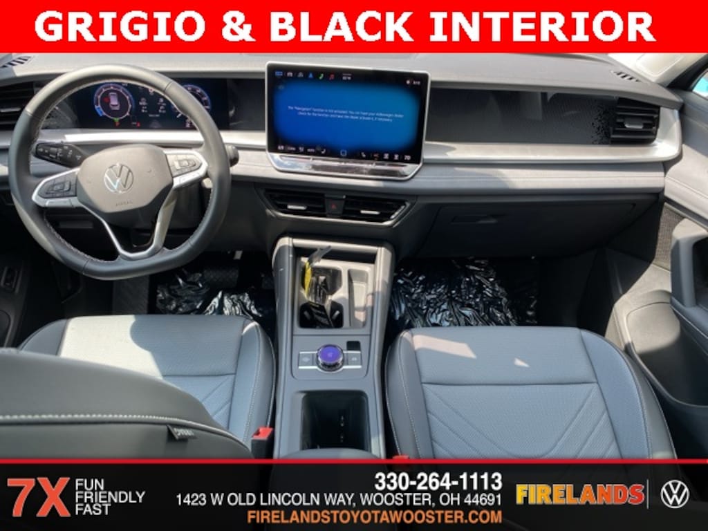 Pyrite Silver Metallic 2025 Volkswagen Tiguan 2.0T SE HTD SEATS & REMOTE START AWD 8-Speed Automatic 2.0L TSI DOHC 4WD/4X4/AWD, Heated Seats, Remote Start, CarPlay, Android Auto, Bluetooth, Backup Camera, Rain Sensing Wipers, Blind Spot Monitoring, Adaptive Cruise Control, Lane Departure Warning, Parking Sensors, Brake Assist, Steering Wheel Controls, Cruise Control, Keyless Start, Keyless Entry, Power Lift Gate, Premium Audio, Satellite Radio, Premium/Alloy Wheels, 4D Sport Utility, AWD, Pyrite Silver Metallic, 7 Speakers, ABS brakes, Active Cruise Control, AM/FM radio: SiriusXM with 360L, Automatic temperature control, Brake assist, Carpeted MojoMats (Set of 4), Compass, Dual front side impact airbags, Electronic Stability Control, Emergency communication system: VW Car-Net Safe & Secure 5-year, Exterior Parking Camera Rear, First Aid Kit, Front Bucket Seats, Front dual zone A/C, Fully automatic headlights, Heated door mirrors, Heated Front Seats, Heated front seats, Illuminated entry, Leather Shift Knob, Low tire pressure warning, Overhead airbag, Panoramic Sunroof Package, Perforated V-Tex Leatherette Seating Surfaces, Power driver seat, Power Liftgate, Power steering, Radio: MIB4 Composition Media Touchscreen AM/FM, Rain sensing wipers, Rear side impact airbag, Remote keyless entry, Roadside Assistance Kit, Security system, Speed-sensing steering, Spoiler, Steering wheel mounted audio controls, Tachometer, Telescoping steering wheel, Tilt steering wheel, Traction control, Trip computer, VW Care, Wheels: 19" 2-Tone Machined Alloy.