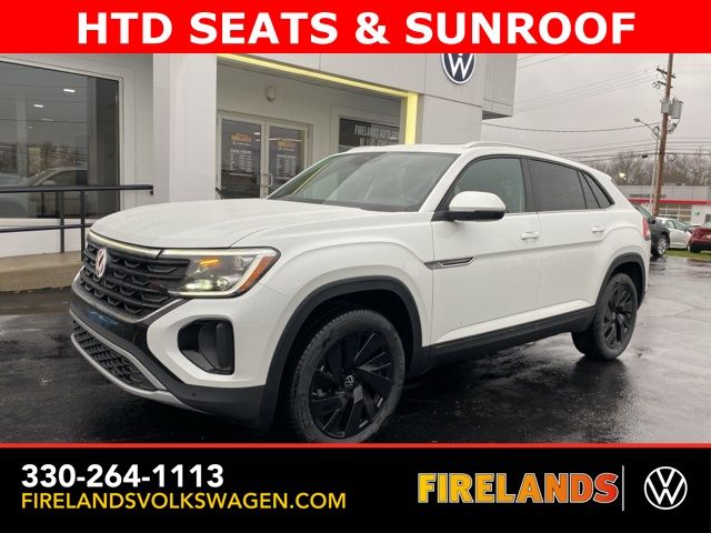 Opal White Pearl 2026 Volkswagen Atlas Cross Sport 2.0T SE w/Technology HTD SEATS & SUNROOF FWD 8-Speed Automatic with Tiptronic 2.0L TSI Heated Seats, Heated & Cooled Seats, Sunroof/Moonroof, Panoramic Roof, Remote Start, CarPlay, Android Auto, Bluetooth, Backup Camera, Rain Sensing Wipers, Blind Spot Monitoring, Adaptive Cruise Control, Lane Departure Warning, Parking Sensors, Brake Assist, Steering Wheel Controls, Cruise Control, Keyless Start, Keyless Entry, Power Lift Gate, Premium/Alloy Wheels, Trailer Hitch, 4D Sport Utility, 2.0L TSI, FWD, 4-Wheel Disc Brakes, 6 Speakers, ABS brakes, Alloy wheels, AM/FM radio: SiriusXM with 360L, Auto High-beam Headlights, Automatic temperature control, Black Wheel Package, Brake assist, Compass, Driver vanity mirror, Dual front side impact airbags, Exterior Parking Camera Rear, Four wheel independent suspension, Front Bucket Seats, Front dual zone A/C, Front fog lights, Fully automatic headlights, Heated door mirrors, Heated front seats, Heated steering wheel, Heavy Duty Trunk Liner w/VW CarGo Blocks, Illuminated entry, Low tire pressure warning, Outside temperature display, Overhead airbag, Panic alarm, Panoramic Sunroof Package, Perforated V-Tex Leatherette Seating Surfaces, Power driver seat, Power Liftgate, Power steering, Rain sensing wipers, Rear window wiper, Remote keyless entry, Rubber Monster Mats Kit (Set of 4), Security system, Speed control, Speed-sensing steering, Spoiler, Steering wheel mounted audio controls, Trailer Hitch Extras, Ventilated front seats, VW Care, Wheels: 20" 5-Spoke 2-Tone Machined Alloy, Wheels: 20" Multi-Spoke Black Painted Alloy.