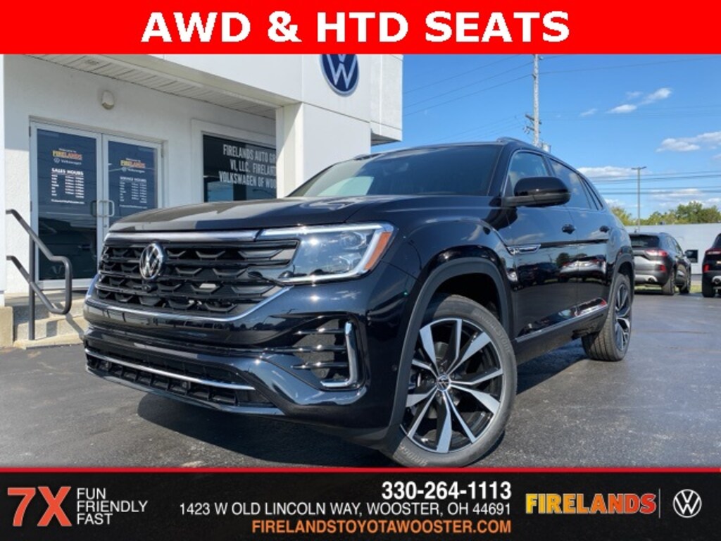 Deep Black 2026 Volkswagen Atlas Cross Sport 2.0T SEL Premium R-Line AWD 8-Speed Automatic with Tiptronic 2.0L TSI 4WD/4X4/AWD, Leather Seats, Heated Seats, Heated Steering Wheel, Heated & Cooled Seats, Sunroof/Moonroof, Panoramic Roof, Remote Start, Navigation System, CarPlay, Android Auto, Bluetooth, Backup Camera, Blind Spot Monitoring, Adaptive Cruise Control, Lane Departure Warning, Parking Sensors, Automatic Parking, Steering Wheel Controls, Cruise Control, Keyless Start, Keyless Entry, Power Lift Gate, Premium Audio, Premium/Alloy Wheels, Trailer Hitch, Atlas Cross Sport 2.0T SEL Premium R-Line, AWD, ABS brakes, Active Cruise Control, Alloy wheels, Brake assist, Compass, Electronic Stability Control, Emergency communication system, Front anti-roll bar, Front dual zone A/C, Heated door mirrors, Heated front seats, Heated rear seats, Illuminated entry, Low tire pressure warning, Memory seat, Navigation System, Occupant sensing airbag, Power driver seat, Power Liftgate, Power moonroof: Panoramic, Power steering, Power windows, Remote keyless entry, Steering wheel mounted audio controls, Traction control.
