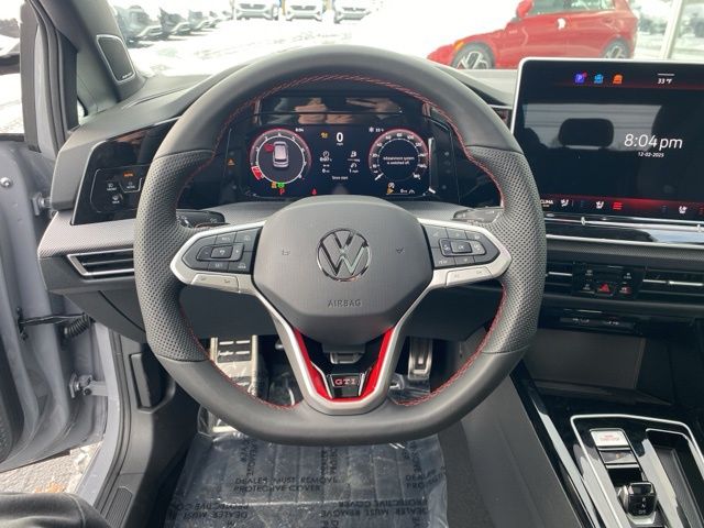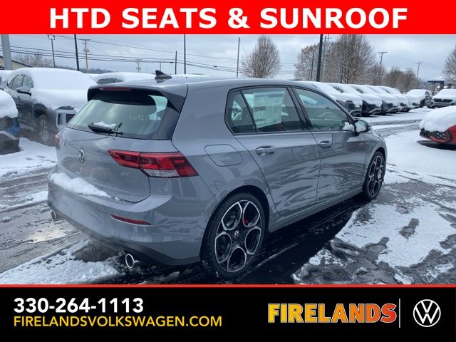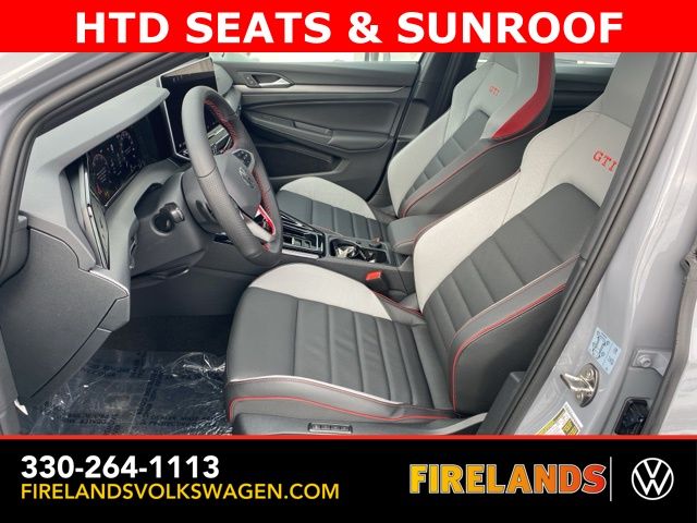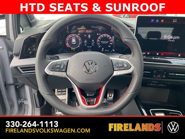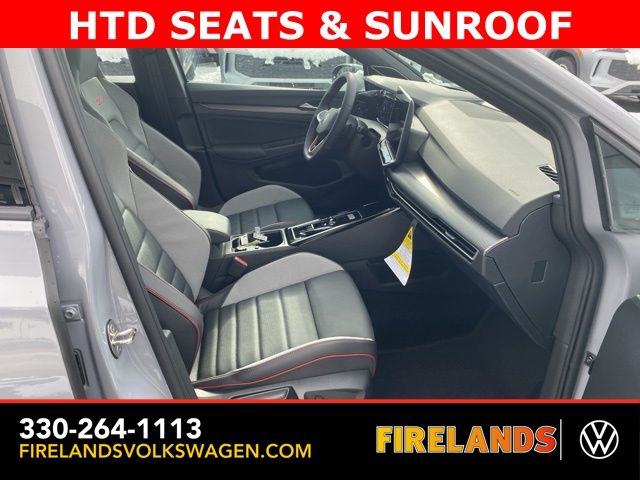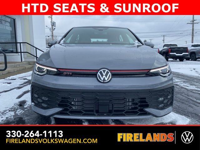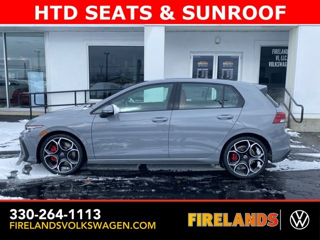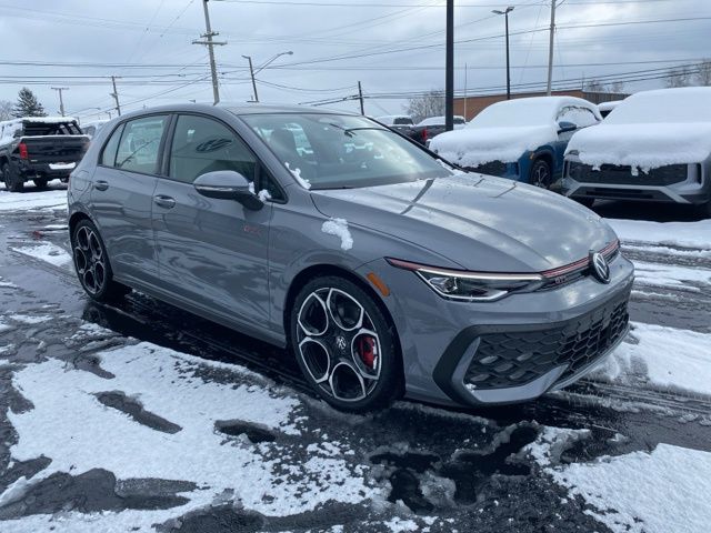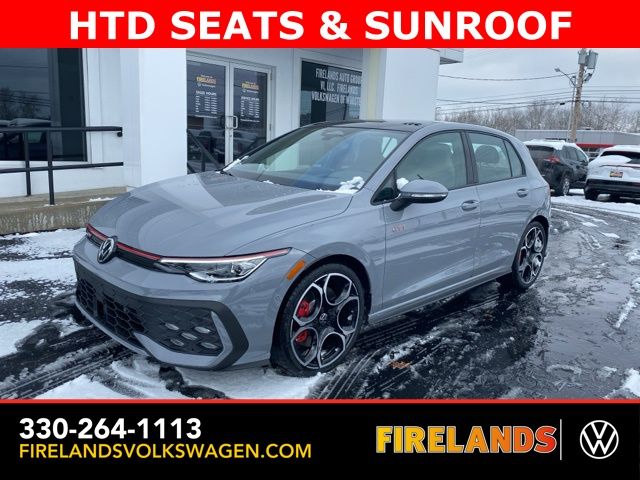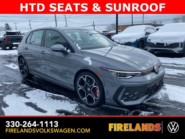 Moonstone Gray 2026 Volkswagen Golf GTI Autobahn HTD SEATS & SUNROOF FWD 7-Speed DSG Automatic with Tiptronic 2.0L TSI DOHC Leather Seats, Heated Seats, Heated Steering Wheel, Heated & Cooled Seats, Sunroof/Moonroof, Panoramic Roof, Navigation System, CarPlay, Android Auto, Bluetooth, Rain Sensing Wipers, Blind Spot Monitoring, Adaptive Cruise Control, Lane Departure Warning, Parking Sensors, Automatic Parking, Brake Assist, Steering Wheel Controls, Cruise Control, Multi Zone Climate Control, Keyless Start, Keyless Entry, Premium Audio, Premium/Alloy Wheels, Golf GTI Autobahn HTD SEATS & SUNROOF, 4D Hatchback, 9 Speakers, Active Blind Spot Monitor, Adaptive suspension, Alloy wheels, AM/FM radio: SiriusXM with 360L, Auto High-beam Headlights, Auto-dimming Rear-View mirror, Auto-Dimming Rearview Mirror w/HomeLink, Automatic temperature control, Brake assist, Bumpers: body-color, Compass, Delay-off headlights, Driver vanity mirror, Dual front impact airbags, Electronic Stability Control, Emergency communication system: VW Car-Net Safe & Secure 5-year, Exterior Parking Camera Rear, Forward collision: FCW w/Autonomous Emergency Braking mitigation, Four wheel independent suspension, Front Bucket Seats, Front Center Armrest, Front dual zone A/C, Fully automatic headlights, harman/kardon® Speakers, Heads-Up Display, Heated and Actively Ventilated Front Top Sport Seats, Heated door mirrors, Heated front seats, Heated rear seats, Heated steering wheel, Heavy Duty Trunk Liner with VW CarGo Blocks, Illuminated entry, Leather steering wheel, Low tire pressure warning, Memory seat, Navigation System, Outside temperature display, Overhead airbag, Panic alarm, Perforated Vienna Leather Seating Surfaces, Power door mirrors, Power driver seat, Power moonroof: Panoramic, Radio: MIB3 Discover Pro AM/FM/HD with 12.9" Touchscreen Navigation, Rain sensing wipers, Rear reading lights, Rear window defroster, Remote keyless entry, Rubber Monster Mats (set of 4), Speed-sensing steering, Speed-Sensitive Wipers, Spoiler, Sport steering wheel, Steering wheel mounted audio controls, Variably intermittent wipers, Ventilated front seats, VW Care, Wheels: 19" 2-Tone Diamond-Turned Alloy.