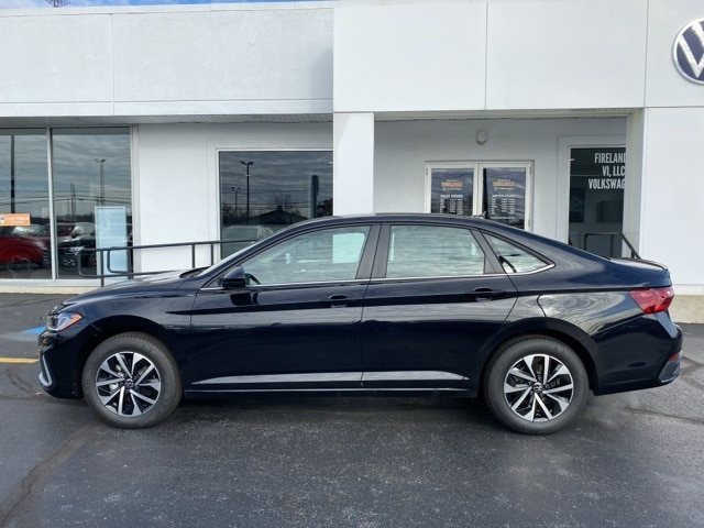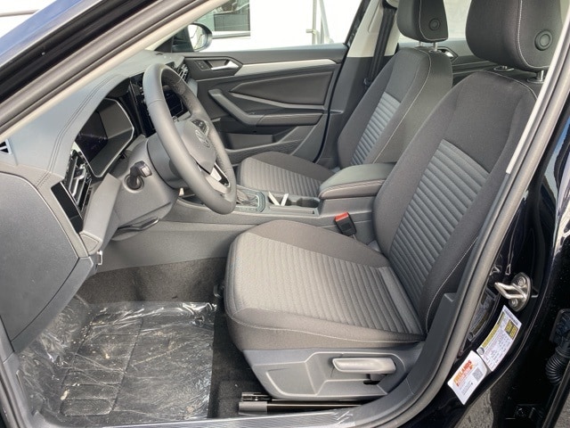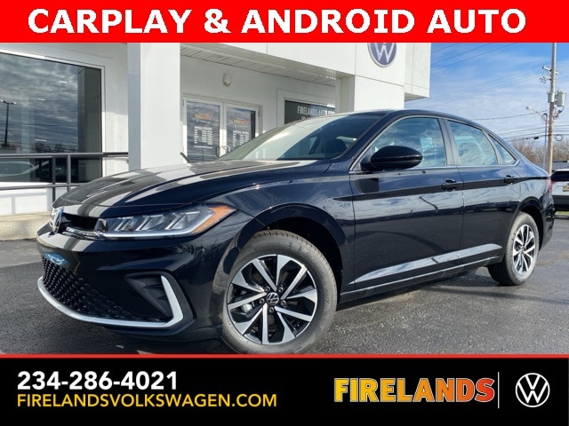 Deep Black Pearl 2026 Volkswagen Jetta 1.5T S CARPLAY & ANDROID AUTO FWD 8-Speed Automatic with Tiptronic 1.5L I-4 DI DOHC Turbocharged CarPlay, Android Auto, Bluetooth, Backup Camera, Rain Sensing Wipers, Blind Spot Monitoring, Adaptive Cruise Control, Lane Departure Warning, Brake Assist, Steering Wheel Controls, Cruise Control, Keyless Entry, Premium/Alloy Wheels, Jetta 1.5T S CARPLAY & ANDROID AUTO, 4D Sedan, 1.5L I-4 DI DOHC Turbocharged, 4-Wheel Disc Brakes, ABS brakes, Active Blind Spot Monitor, Automatic temperature control, Black Trunk Lid Lip Spoiler, Brake assist, Cloth Seat Trim, Driver vanity mirror, Dual front side impact airbags, Electronic Stability Control, Emergency communication system: VW Car-Net Safe & Secure 5-year, Exterior Parking Camera Rear, First Aid Kit, Front anti-roll bar, Front Bucket Seats, Front Center Armrest, Front dual zone A/C, Fully automatic headlights, Heated door mirrors, Illuminated entry, Leather Shift Knob, Leather steering wheel, Low tire pressure warning, Occupant sensing airbag, Outside temperature display, Overhead airbag, Power steering, Radio data system, Rain sensing wipers, Remote keyless entry, Speed control, Split folding rear seat, Steering wheel mounted audio controls, Telescoping steering wheel, Traction control, VW Care, Wheels: 16" 2-Tone Machined Alloy.