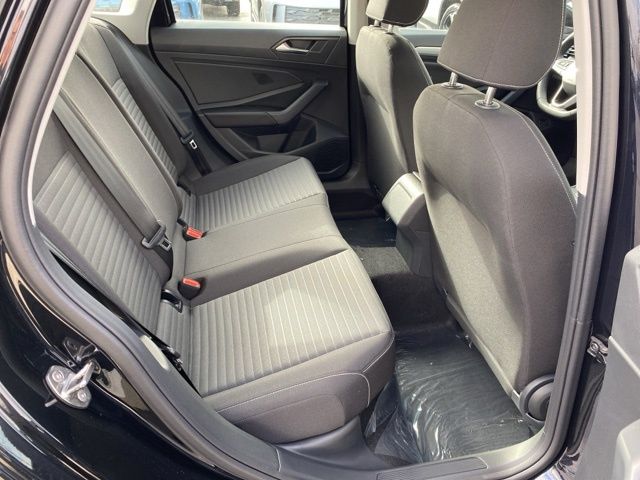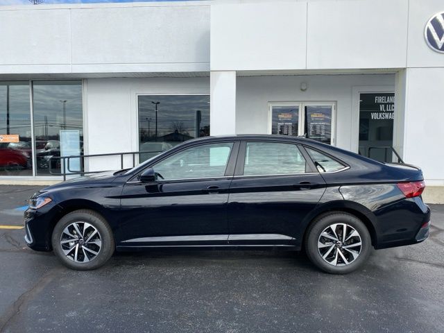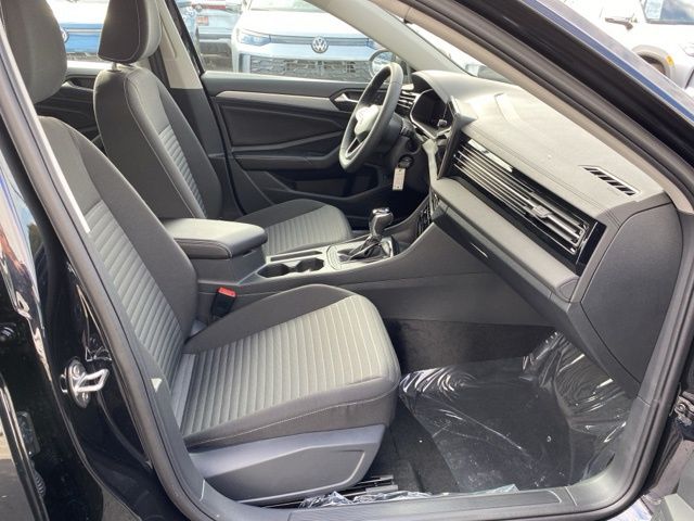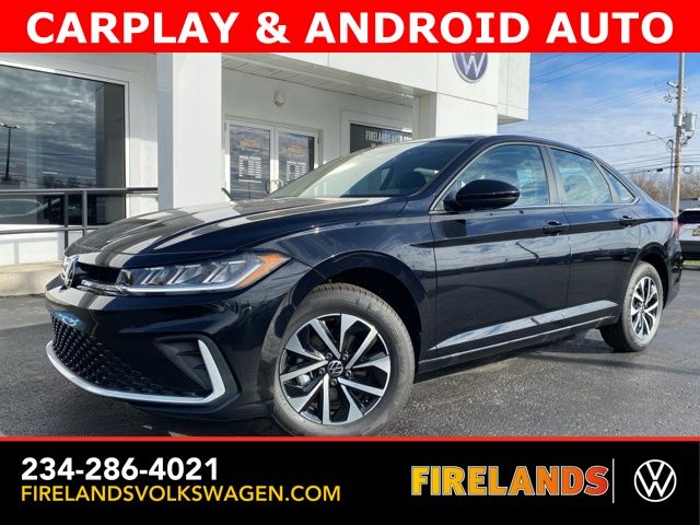 Deep Black Pearl 2026 Volkswagen Jetta 1.5T S CARPLAY & ANDROID AUTO FWD 8-Speed Automatic with Tiptronic 1.5L I-4 DI DOHC Turbocharged CarPlay, Android Auto, Bluetooth, Backup Camera, Rain Sensing Wipers, Blind Spot Monitoring, Adaptive Cruise Control, Lane Departure Warning, Brake Assist, Steering Wheel Controls, Cruise Control, Keyless Entry, Premium/Alloy Wheels, Jetta 1.5T S CARPLAY & ANDROID AUTO, 4D Sedan, 1.5L I-4 DI DOHC Turbocharged, 4-Wheel Disc Brakes, ABS brakes, Active Blind Spot Monitor, Automatic temperature control, Black Trunk Lid Lip Spoiler, Brake assist, Cloth Seat Trim, Driver vanity mirror, Dual front side impact airbags, Electronic Stability Control, Emergency communication system: VW Car-Net Safe & Secure 5-year, Exterior Parking Camera Rear, First Aid Kit, Front anti-roll bar, Front Bucket Seats, Front Center Armrest, Front dual zone A/C, Fully automatic headlights, Heated door mirrors, Illuminated entry, Leather Shift Knob, Leather steering wheel, Low tire pressure warning, Occupant sensing airbag, Outside temperature display, Overhead airbag, Passenger door bin, Passenger vanity mirror, Power steering, Radio data system, Rain sensing wipers, Rear reading lights, Remote keyless entry, Speed control, Split folding rear seat, Steering wheel mounted audio controls, Telescoping steering wheel, Traction control, Trip computer, VW Care, Wheels: 16" 2-Tone Machined Alloy.