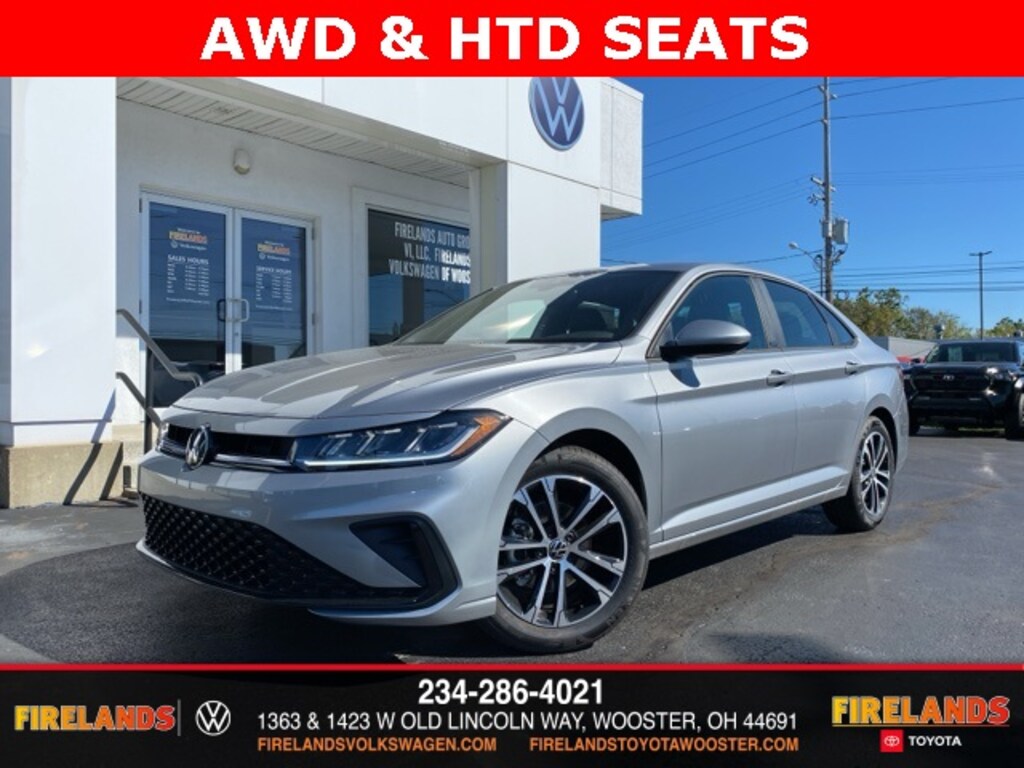 Pyrite Silver Metallic 2026 Volkswagen Jetta 1.5T Sport HTD SEATS & CARPLAY FWD 8-Speed Automatic with Tiptronic 1.5L I-4 DI DOHC Turbocharged Heated Seats, CarPlay, Android Auto, Bluetooth, Backup Camera, Rain Sensing Wipers, Blind Spot Monitoring, Adaptive Cruise Control, Lane Departure Warning, Brake Assist, Steering Wheel Controls, Cruise Control, Keyless Entry, Satellite Radio, Premium/Alloy Wheels, Active Blind Spot Monitor, Auto-dimming Rear-View mirror, Auto-Dimming Rearview Mirror w/HomeLink, Brake assist, Emergency communication system: VW Car-Net Safe & Secure 5-year, Exterior Parking Camera Rear, First Aid Kit, Front dual zone A/C, Fully automatic headlights, Heated Front Seats, Heated front seats, Heavy Duty Trunk Liner w/VW CarGo Blocks, Illuminated entry, Leather Shift Knob, Leather steering wheel, Low tire pressure warning, Radio: MIB3 Composition Color w/8" Touchscreen, Rain sensing wipers, Rear window defroster, Remote keyless entry, Rubber Monster Mats Kit (Set of 4), Split folding rear seat, Steering wheel mounted audio controls, VW Care, Wheels: 17" 2-Tone Machined Alloy.