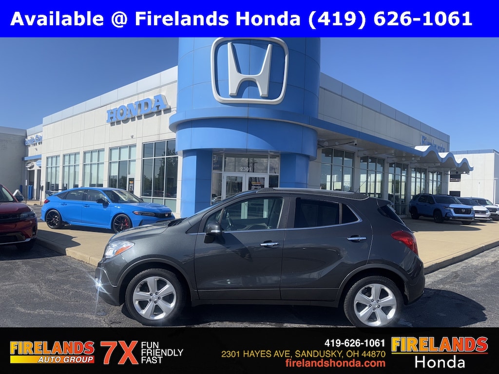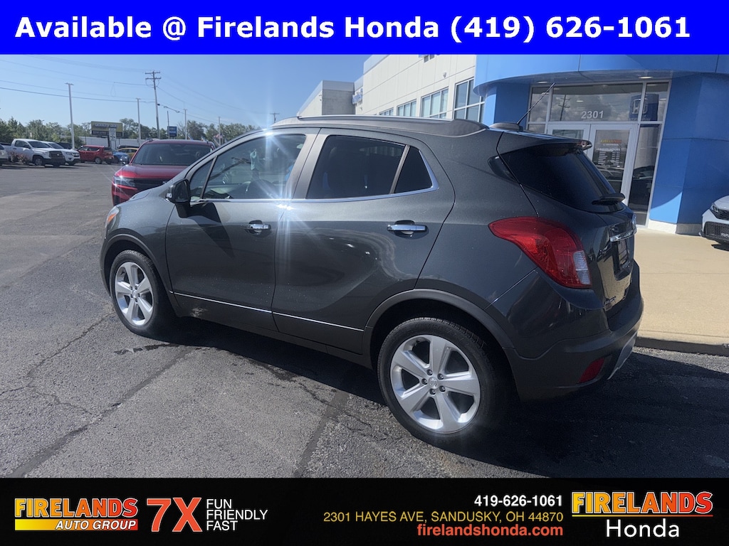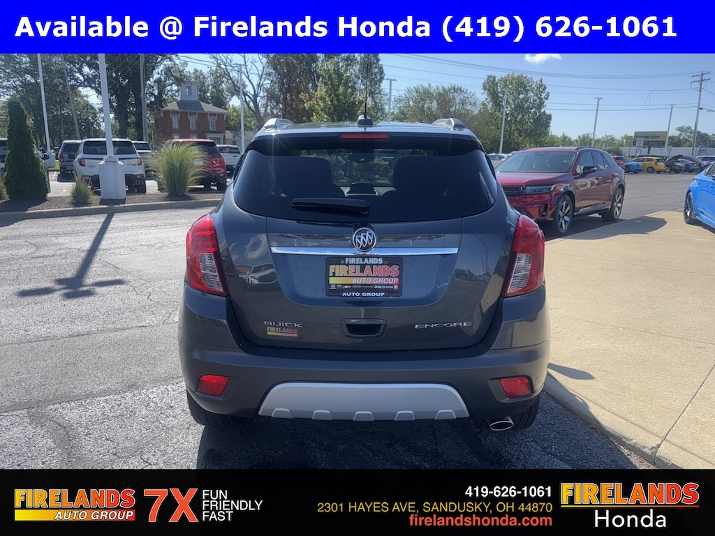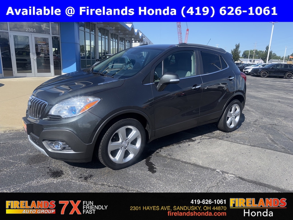 Firelands Honda is proud to offer this wonderful-looking 2016 Buick Encore in Graphite Gray Metallic. This Encore has been checked by our award winning service department. Hot features include: Bluetooth Hands Free, Back Up Camera, Remote Start, Service Records Available, Heated Leather Seats, Blind Spot Detection, Fog Lights, Clean CARFAX, No Accidents, Memory Seats, Preferred Equipment Group 1SL.