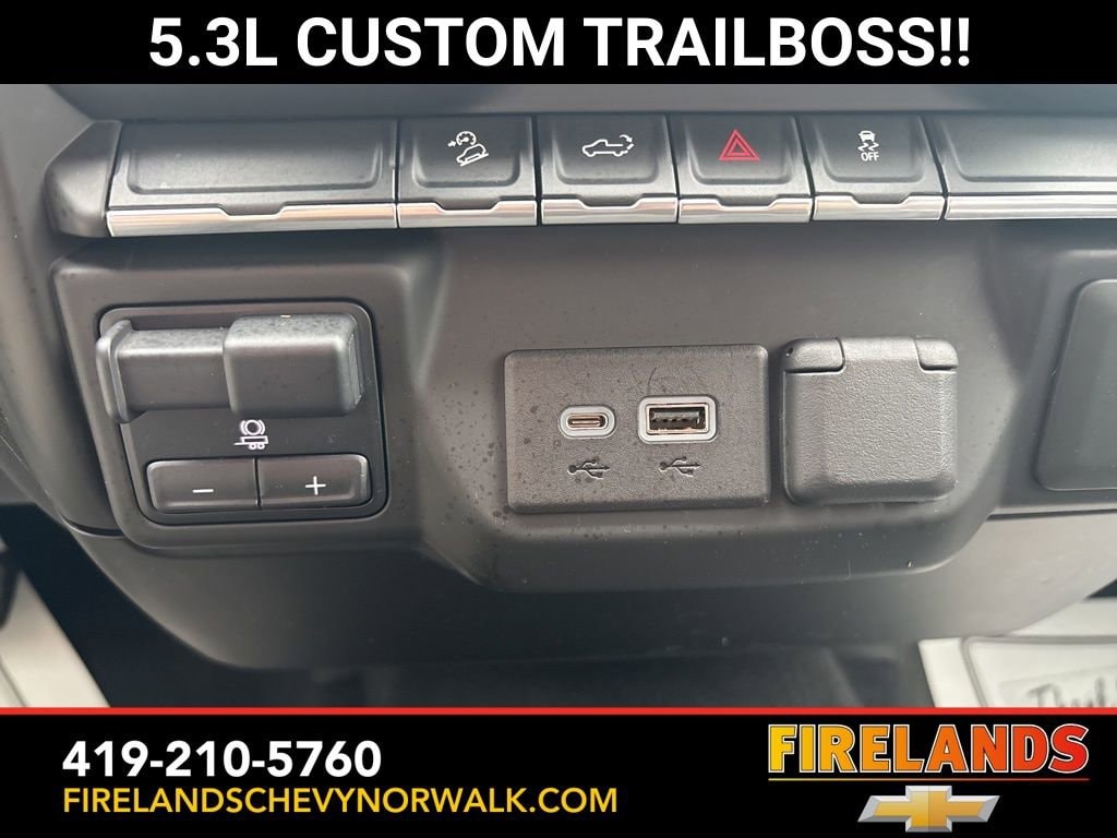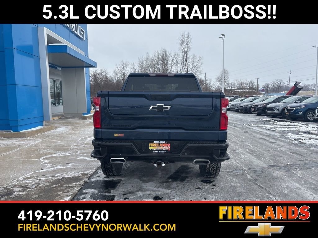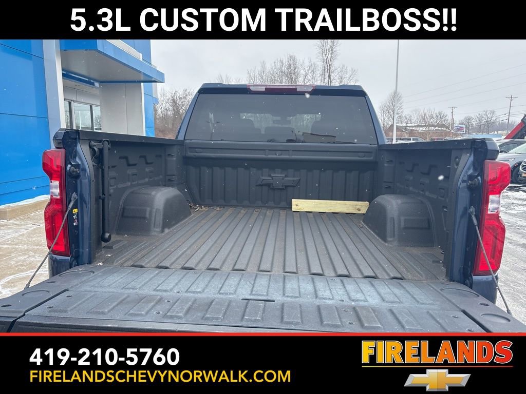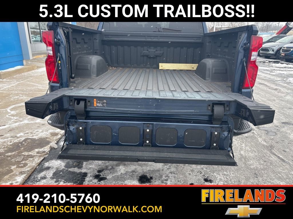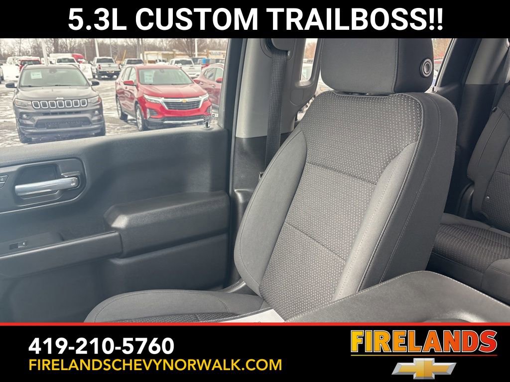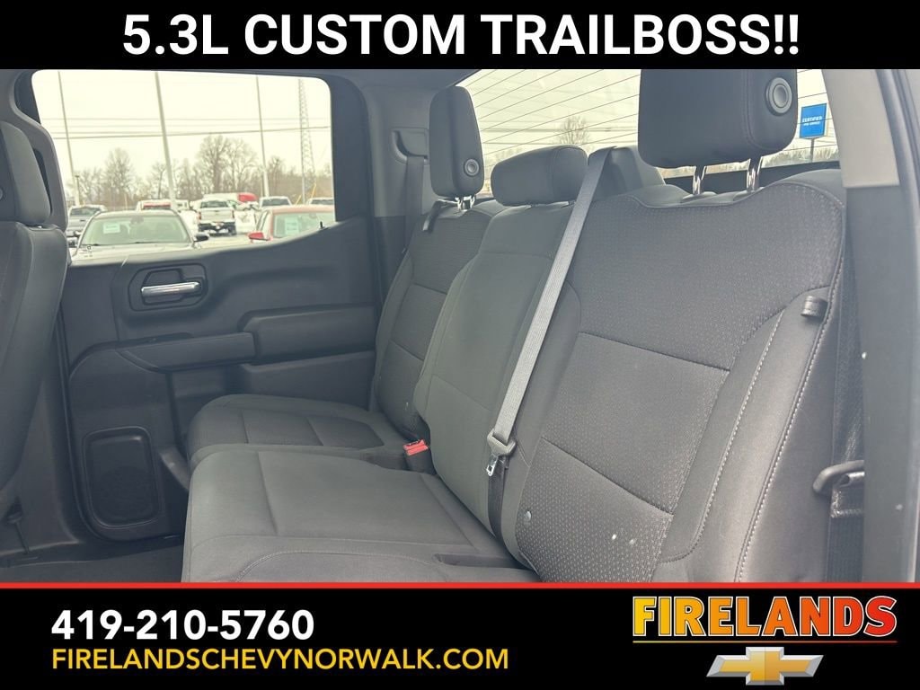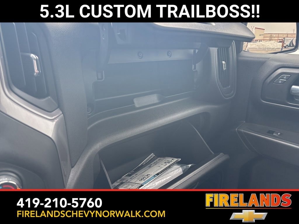 Designed with the adventurer in mind, the Silverado 1500 Custom Trail Boss boasts a rugged and capable off-road suspension with a 2-inch lift, as well as a Chevytec spray-on bedliner and multi-flex tailgate for added utility. The dark essentials package, complete with black badging and accents, gives this truck a bold and distinctive look that's sure to turn heads.