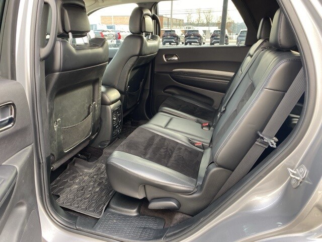 4WD/4X4/AWD, Leather Seats, Heated Seats, Heated Steering Wheel, CarPlay, Android Auto, Bluetooth, Backup Camera, Brake Assist, Steering Wheel Controls, Keyless Start, Keyless Entry, Power Lift Gate, Third Row Seats, Premium/Alloy Wheels, Durango GT, AWD, 3.45 Rear Axle Ratio, 3rd row seats: split-bench, 4-Wheel Disc Brakes, 6 Speakers, ABS brakes, Air Conditioning, Alloy wheels, Apple CarPlay, Apple CarPlay/Android Auto, Audio memory, Auto-dimming door mirrors, Auto-dimming Rear-View mirror, Brake assist, Compass, Delay-off headlights, Driver vanity mirror, Dual front impact airbags, Dual front side impact airbags, Electronic Stability Control, Emergency communication system: Roadside Assistance/9-1-1 Call, Front Center Armrest w/Storage, Front dual zone A/C, Front License Plate Bracket (DISC), Front reading lights, Fully automatic headlights, Garage door transmitter, Google Android Auto, Heated door mirrors, Heated front seats, Heated rear seats, Heated steering wheel, Illuminated entry, Leather Suede Bucket Seats, Low tire pressure warning, Manufacturer's Statement of Origin, Memory seat, Outside temperature display, ParkView Rear Back-Up Camera, Passenger door bin, Power driver seat, Power Liftgate, Power passenger seat, Power steering, Quick Order Package 2BE, Radio: Uconnect 4 w/7" Display, Rear air conditioning, Rear anti-roll bar, Rear reading lights, Remote keyless entry, Security system, Speed control, Speed-Sensitive Wipers, Split folding rear seat, Spoiler, Steering wheel mounted audio controls, Tilt steering wheel, Traction control, Wheels: 20" x 8.0" Premium Painted Aluminum.