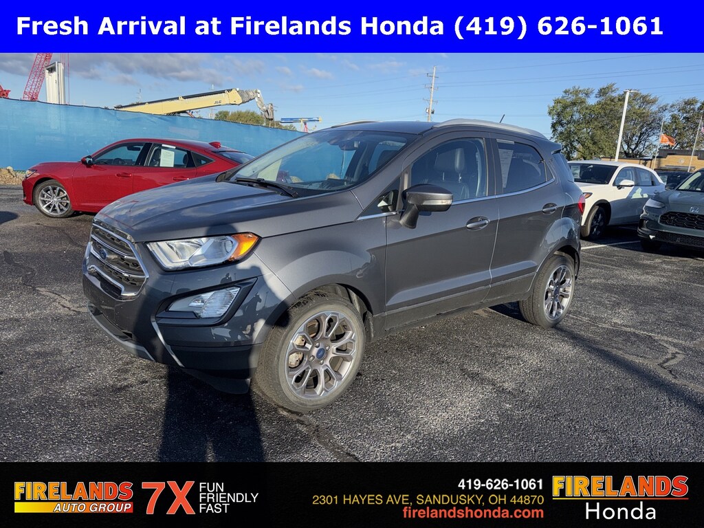 Firelands Honda is proud to offer this outstanding-looking 2021 Ford EcoSport in Smoke. This EcoSport has been checked by our award winning service department. Hot features include: Bluetooth Hands Free, Back Up Camera, Navigation / GPS, Balance of Factory Warranty, Service Records Available, Heated Leather Seats, Apple Carplay/Android Auto, Blind Spot Detection, Fog Lights, Moonroof / Sunroof, Clean CARFAX, One Owner, No Accidents, Heated Steering Wheel.