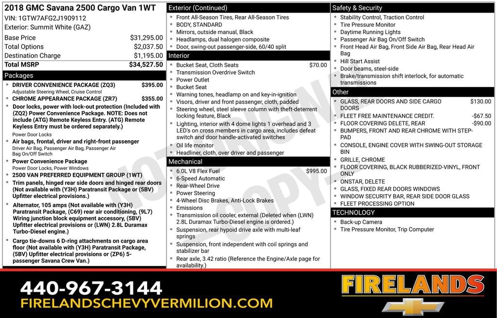 Used 2018 GMC Savana Cargo 2500 Cargo