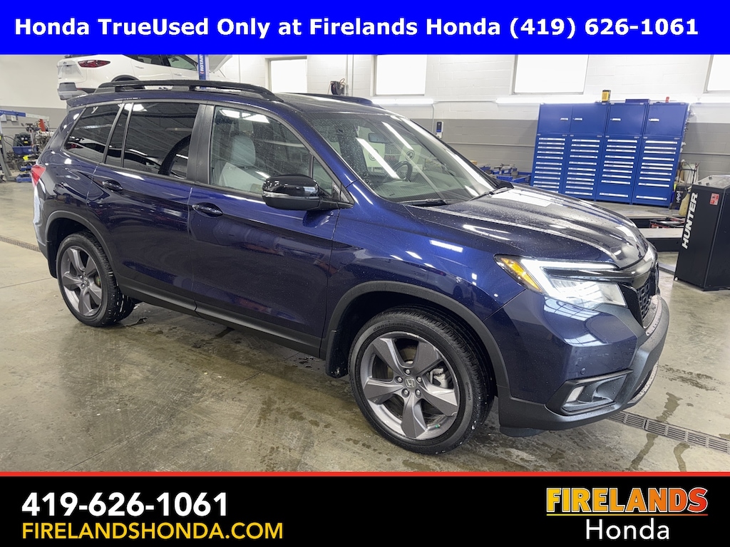 Firelands Honda is proud to offer this handsome 2021 Honda Passport in Obsidian Blue Pearl. This Passport has been checked by our award winning service department. Hot features include: Bluetooth Hands Free, Back Up Camera, Navigation / GPS, Remote Start, Local Trade, Adaptive Cruise Control, Service Records Available, All-Wheel Drive, Heated Leather Seats, Locally Owned New Car Trade, Lane Departure Warning, Apple Carplay/Android Auto, Blind Spot Detection, Fog Lights, Automatic Emergency Braking, Forward Collision Warning, Rear Cross Traffic Alert, Honda Certified, Moonroof / Sunroof, One Owner, Power Liftgate, Memory Seats. Certified.