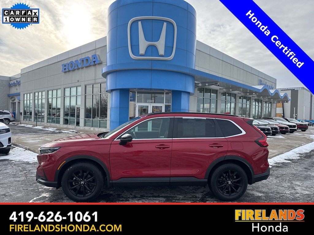 Firelands Honda is proud to offer this good-looking 2024 Honda CR-V Hybrid in Radiant Red Metallic. This CR-V Hybrid has been checked by our award winning service department. Hot features include: Bluetooth Hands Free, Back Up Camera, Remote Start, Adaptive Cruise Control, Balance of Factory Warranty, Service Records Available, All-Wheel Drive, Lane Departure Warning, Apple Carplay/Android Auto, Blind Spot Detection, Fog Lights, Automatic Emergency Braking, Forward Collision Warning, Rear Cross Traffic Alert, Honda Certified, Moonroof / Sunroof, Clean CARFAX, One Owner, No Accidents, Heated Front Seats. Certified.