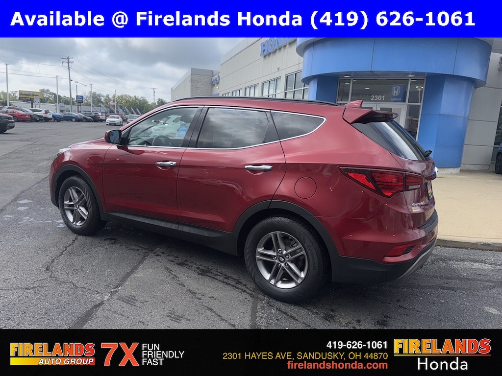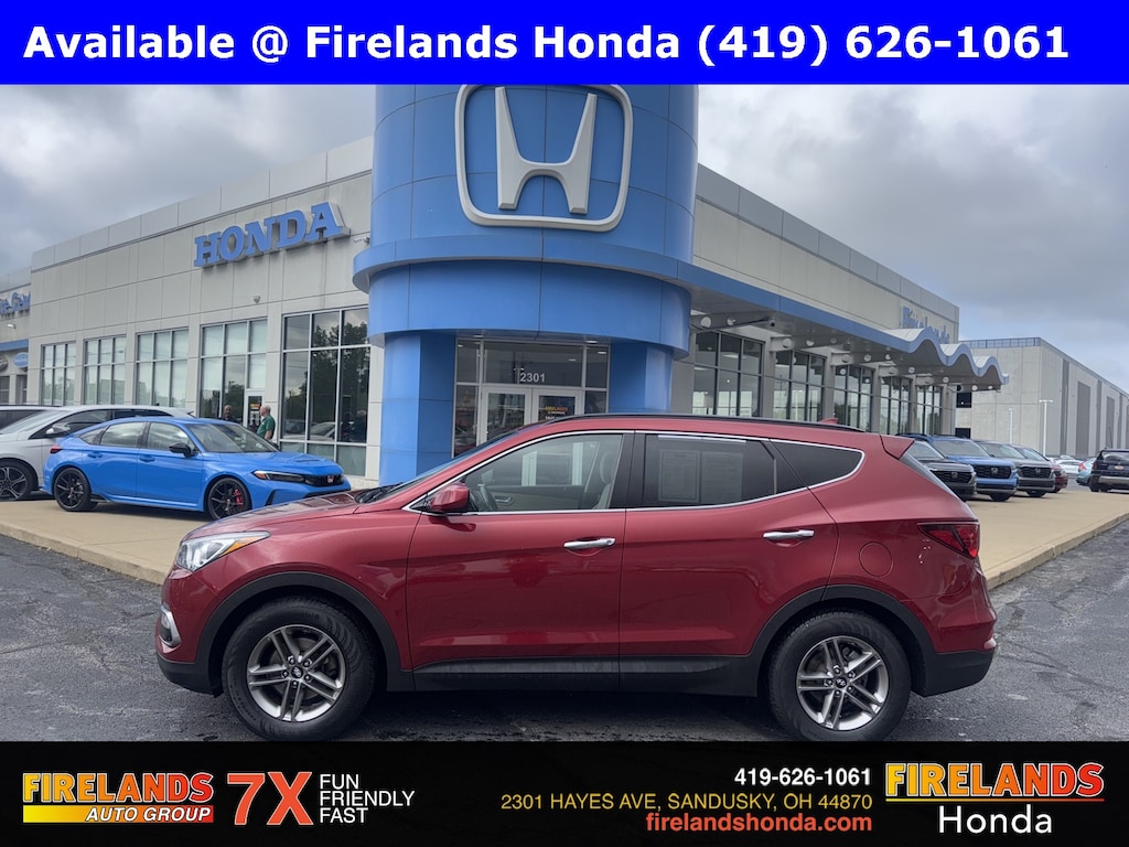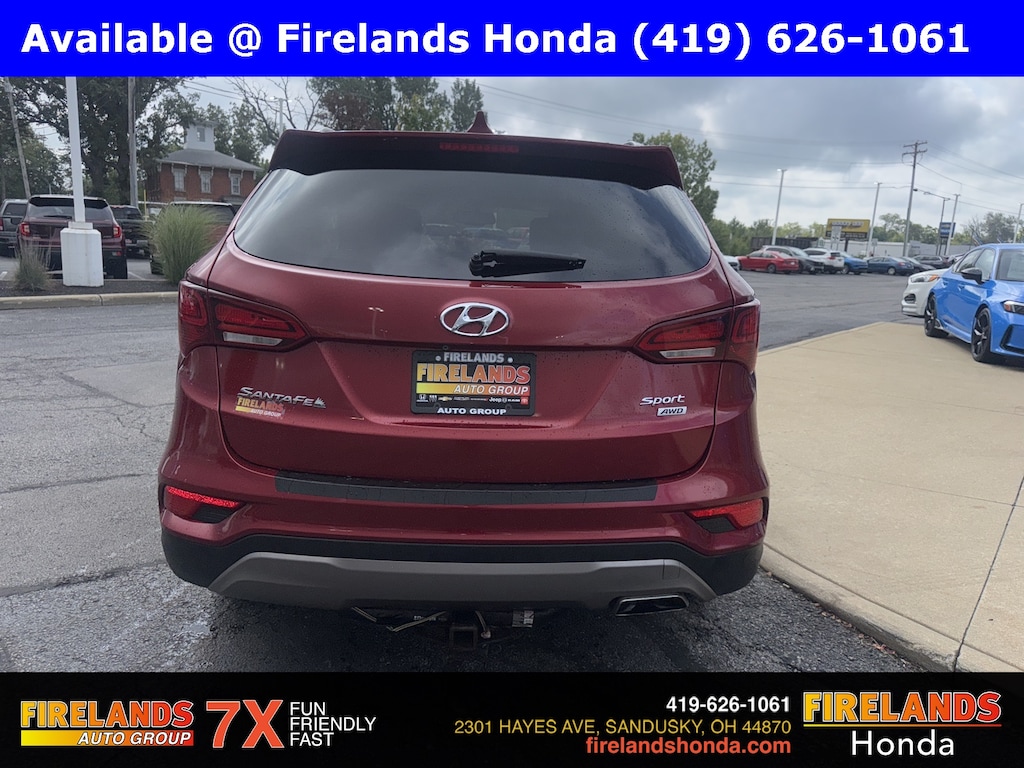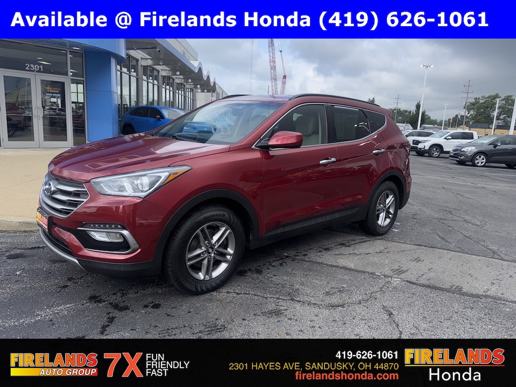 Firelands Honda is proud to offer this good-looking 2017 Hyundai Santa Fe Sport in Serrano Red. This Santa Fe Sport has been checked by our award winning service department. Hot features include: Bluetooth Hands Free, Back Up Camera, Service Records Available, All-Wheel Drive, 2.4L Popular Equipment Package 02, 6 Speakers, AM/FM radio: SiriusXM, Cargo Package, CD player, Dual Zone Automatic Temperature Control, Fog Lights, LED Daytime Running Lights, Option Group 02, Power Driver Seat w/Lumbar Support, Power steering, Power windows, Radio: AM/FM/SiriusXM/CD/HD/MP3 Display Audio, Rear window defroster, Remote keyless entry, Roof Side Rails, Steering wheel mounted audio controls.