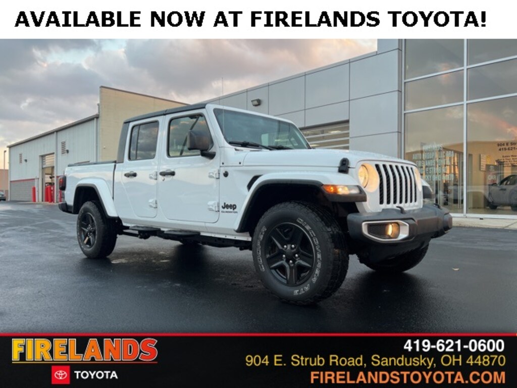 Firelands Toyota is proud to offer this fantastic 2021 Jeep Gladiator in Bright White Clearcoat. This Gladiator has been checked by our award winning service department. Hot features include; Back Up Camera, 4x4, 240 Amp Alternator, 7.0" Touch Screen Display, Air Conditioning w/Auto Temperature Control, Apple CarPlay, Automatic Headlamps, Black 3-Piece Hard Top, Body Color Fender Flares (2-Piece), Class IV Hitch Receiver, Cluster 7.0" TFT Color Display, Convenience Group, Daytime Running Lamp System, Deep Tint Sunscreen Windows, For More Info, Call 800-643-2112, Freedom Panel Storage Bag, Front 1-Touch Down Power Windows, Google Android Auto, GPS Antenna Input, Heavy-Duty Engine Cooling, Integrated Center Stack Radio, Integrated Voice Command w/Bluetooth, Leather Wrapped Steering Wheel, Molded in Color Bumper w/Accent Color, Normal Duty Plus Suspension, Popular Equipment Package, Power Heated Mirrors, Power Tailgate Lock, Quick Order Package 24S Sport S, Radio: Uconnect 4 w/7" Display, Rear Sliding Window, Rear Window Defroster, Remote Keyless Entry, Security Alarm, SiriusXM Radio Service, SiriusXM Satellite Radio, Speed Sensitive Power Locks, Sport S, Sun Visors w/Illuminated Vanity Mirrors, Technology Group, Trailer Hitch Zoom, Trailer Tow Package, Universal Garage Door Opener, USB Host Flip.