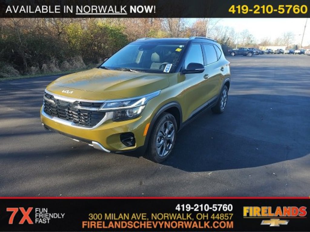 2024 Kia Seltos SCar Bravo Certified, 1-Owner, Great Price, Clean CarFax, Like New, 4WD / 4x4 / AWD, Remote Start, Navigation System, CarPlay, Android Auto, Bluetooth, Backup Camera, Steering Wheel Controls, Cruise Control, Keyless Start, Keyless Entry, Premium Audio, Satellite Radio, Premium / Alloy Wheels, 4D Sport Utility, AWD, Valais Green/Black Roof, Glossy Black Door Garnish, Glossy Black Door Garnish Package, Navigation System.Clean CARFAX. CARFAX One-Owner.AWD 2.0L I4 MPI CVT27/31 City/Highway MPG Recent Arrival!Welcome to the Firelands Family!! We understand that you donât want to come to a dealership and play games for hours. Thatâs why we focus on a few key principles: Be Really Fast Be Really Friendly, Be Really Fun, Be Really Honest. The price you see is the price you pay; plain and simple! We price our cars NOT our customers and hope that you have fun when you are here. We will never advertise misleading or confusing payments thatâs not our style. Rather, we hope to give you the best retail experience possible; after all: we LIVE off repeat and referral business. Our Vehicle Specialists are NOT paid on the profit (or loss) of a vehicle. You have DIRECT access to our Sales and Finance Managers cell phone numbers. We canât wait to put our best foot forward and have you leave smiling for years to come!
