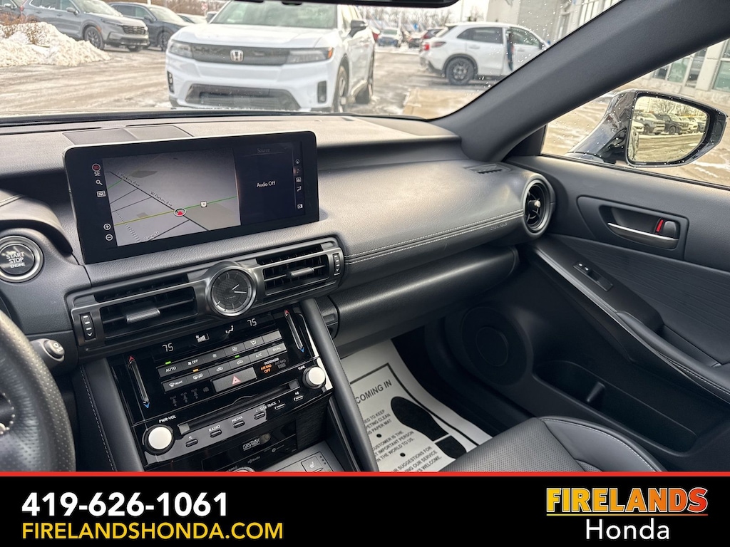 Firelands Honda is proud to offer this charming 2024 Lexus IS in Caviar. This IS has been checked by our award winning service department. Hot features include: Bluetooth Hands Free, Back Up Camera, Navigation / GPS, Ventilated/Cooled Seats, Adaptive Cruise Control, Balance of Factory Warranty, Service Records Available, All-Wheel Drive, Heated Leather Seats, Lane Departure Warning, Apple Carplay/Android Auto, Blind Spot Detection, Fog Lights, Automatic Emergency Braking, Forward Collision Warning, Rear Cross Traffic Alert, 360 Degree Surround View Camera System, Moonroof / Sunroof, Clean CARFAX, One Owner, No Accidents, Memory Seats, Heated Steering Wheel, ABS brakes, Active Cruise Control, Alloy wheels, Compass, Electronic Stability Control, Front dual zone A/C, Heated door mirrors, Heated front seats, Illuminated entry, Low tire pressure warning, Remote keyless entry, Traction control.