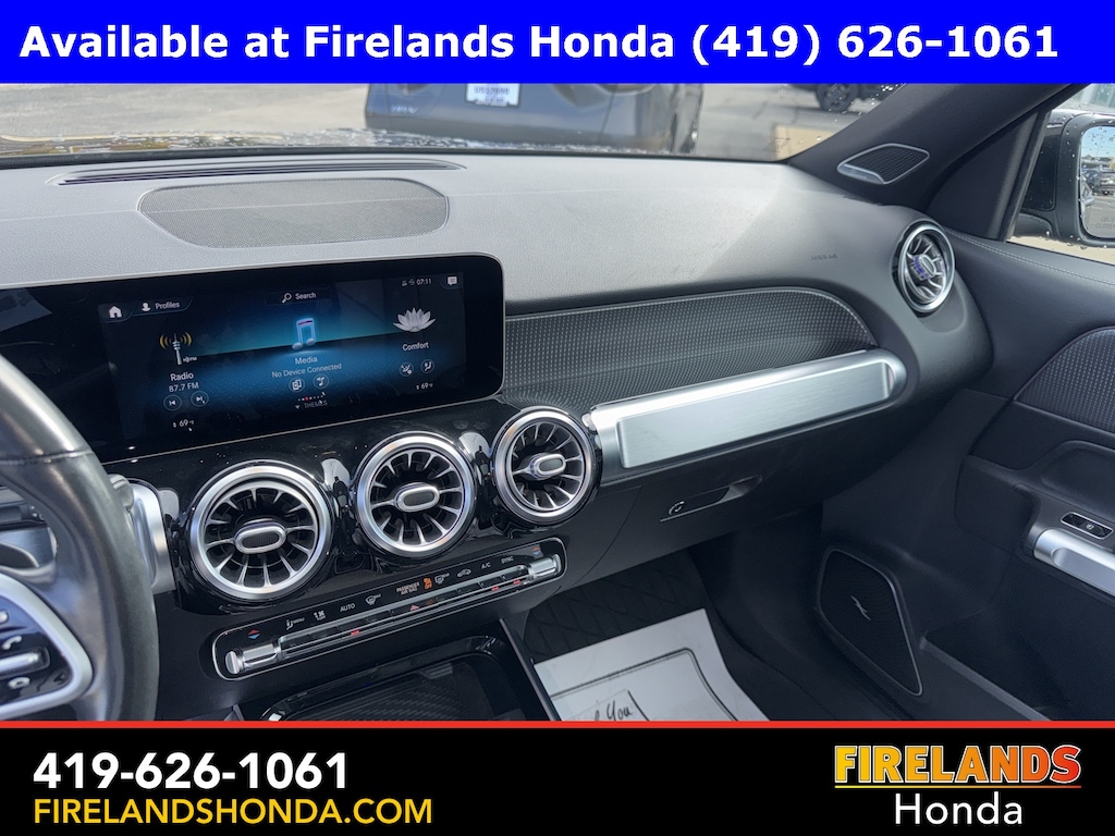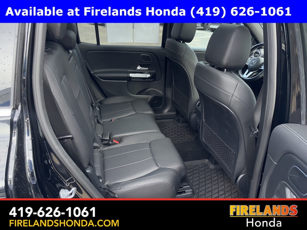 Firelands Honda is proud to offer this fantastic-looking 2021 Mercedes-Benz GLB in Night Black. This GLB has been checked by our award winning service department. Hot features include: Bluetooth Hands Free, Back Up Camera, Local Trade, Service Records Available, Good Tires, Good Brakes, All-Wheel Drive, Heated Leather Seats, Lane Departure Warning, Apple Carplay/Android Auto, Blind Spot Detection, Fog Lights, Automatic Emergency Braking, Forward Collision Warning, Rear Cross Traffic Alert, Panoramic Moonroof, Clean CARFAX, One Owner, 4-Way Power Lumbar Support, 8-Way Power Front Seats w/Memory, MB-Tex Upholstery, MBUX Voice Control, Memory seat, Power driver seat, Power Liftgate, Power steering, Power windows, Rain sensing wipers, Remote keyless entry, Steering wheel mounted audio controls.