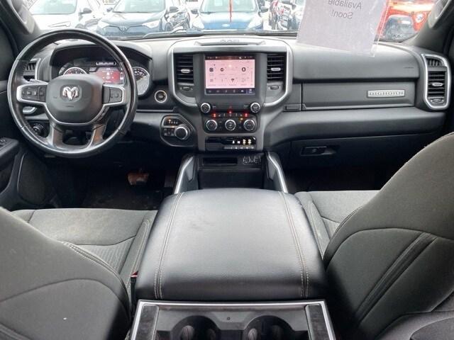 4WD/4X4/AWD, Heated Seats, Heated Steering Wheel, CarPlay, Android Auto, Bluetooth, Backup Camera, Parking Sensors, Brake Assist, Steering Wheel Controls, Keyless Entry, Premium/Alloy Wheels, Trailer Hitch, 1500 Big Horn/Lone Star, HEMI 5.7L V8 Multi Displacement VVT, 4WD, 115V Auxiliary Power Outlet, 115V Auxiliary Rear Power Outlet, 3 Rear Seat Head Restraints, 4 Way Front Headrests, 400W Inverter, 48V Belt Starter Generator, 4G LTE Wi-Fi Hot Spot, 8.4" Touchscreen Display, Air Conditioning ATC w/Dual Zone Control, All Plant-Installed Decals, AM/FM radio, Apple CarPlay, Auto-Dimming Exterior Driver Mirror, Auto-Dimming Rear-View Mirror, Big Horn Badge, Big Horn Level 2 Equipment Group, Black Exterior Mirrors, Black Interior Accents, Black Premium Power Mirrors, Bluetooth Handsfree Phone & Audio, Body Color Exterior Mirrors, Body Color Front Bumper, Body Color Premium Power Mirrors, Body Color Rear Bumper w/Step Pads, Brake assist, Bridgestone Brand Tires, Bucket Seats, Class IV Receiver Hitch, Cluster 7.0" TFT Color Display, Connectivity - US/Canada, Convex Wide-Angle Mirror Insert, Delete LED Lamp - Floor Console Bin, Deluxe Cloth Bucket Seats, Emergency communication system: SiriusXM Guardian, Exterior Mirrors Courtesy Lamps, Exterior Mirrors w/Heating Element, Exterior Mirrors w/Supplemental Signals, For Details, Visit DriveUconnect.com, For More Info, Call 800-643-2112, Front anti-roll bar, Front fog lights, Front Seat Back Map Pockets, Full Length Floor Console, Fully automatic headlights, Global Telematics Box Module (TBM), Glove Box Lamp, Google Android Auto, GPS Antenna Input, Grille Surround 1 Body Color Texture 2 Black, Heated Front Seats, Heated Steering Wheel, Illuminated entry, Integrated Center Stack Radio, Leather steering wheel, Low tire pressure warning, Manual Adjust 4-Way Front Passenger Seat, Media Hub w/2 Charge Only USBs, Panic alarm, ParkSense Front/Rear Park Assist w/Stop, ParkView Rear Back-Up Camera, Power 2-Way Driver Lumbar Adjust, Power 8-Way Driver Seat, Power Adjustable Pedals, Power-Folding Mirrors, Quick Order Package 25Z Big Horn, Radio: Uconnect 5 W w/8.4" Display, Rear 60/40 Folding Seat, Rear Dome w/On/Off Switch Lamp, Rear Power Sliding Window, Rear Window Defroster, Remote keyless entry, Remote Start System, Security Alarm, SiriusXM Radio Service, SiriusXM Satellite Radio, Sport Appearance Package, Sport Decal, Steering wheel mounted audio controls, Sun Visors w/Illuminated Vanity Mirrors, Universal Garage Door Opener, USB Host Flip, Variably intermittent wipers, Wheels: 18" x 8" Cast-Aluminum Painted, Wheels: 20" x 9" Aluminum Chrome Clad.