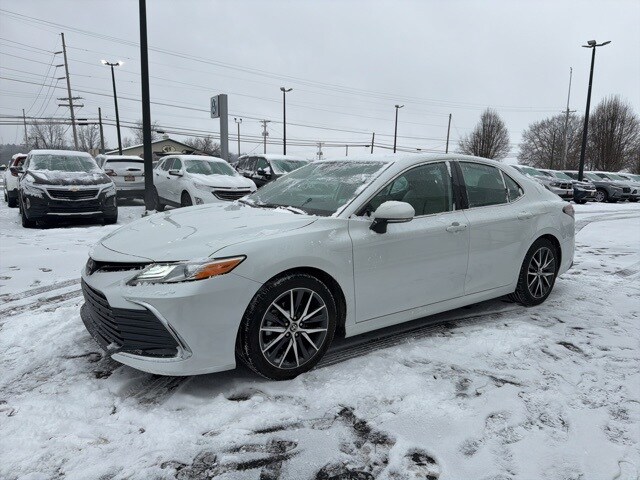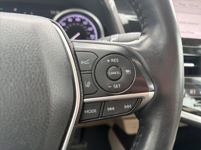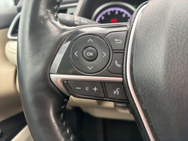 Leather Seats, Heated Seats, Heated Steering Wheel, CarPlay, Android Auto, Bluetooth, Backup Camera, Brake Assist, Steering Wheel Controls, Keyless Entry, Camry XLE, 4D Sedan, FWD, Apple CarPlay/Android Auto, Auto-dimming Rear-View mirror, Automatic temperature control, Brake assist, Delay-off headlights, Driver vanity mirror, Dual front side impact airbags, Emergency communication system: Safety Connect with 1-year trial, Exterior Parking Camera Rear, Front Bucket Seats, Front dual zone A/C, Front reading lights, Fully automatic headlights, Garage door transmitter: HomeLink, Heated door mirrors, Heated front seats, Illuminated entry, Low tire pressure warning, Occupant sensing airbag, Outside temperature display, Overhead console, Perforated Leather Seat Trim, Power driver seat, Power passenger seat, Radio data system, Radio: AM/FM/HD Audio Plus, Rear seat center armrest, Rear side impact airbag, Remote keyless entry, Security system, Speed control, Speed-sensing steering, Steering wheel mounted audio controls, Tachometer, Trip computer, Turn signal indicator mirrors, Variably intermittent wipers, Wheels: 8.0J x 18" Dark Gray Machined-Finish Alloy.