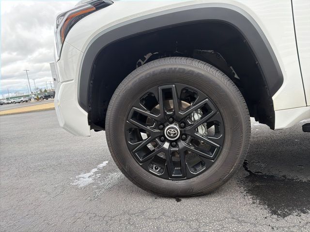 Adorned in a sleek white exterior, this Tundra Limited exudes a commanding presence on the road. The Nightshade Package adds a touch of sophisticated style with its gloss black and body-color accents, while the 20-inch matte black TRD Sport-style wheels complete the bold, sporty look.
