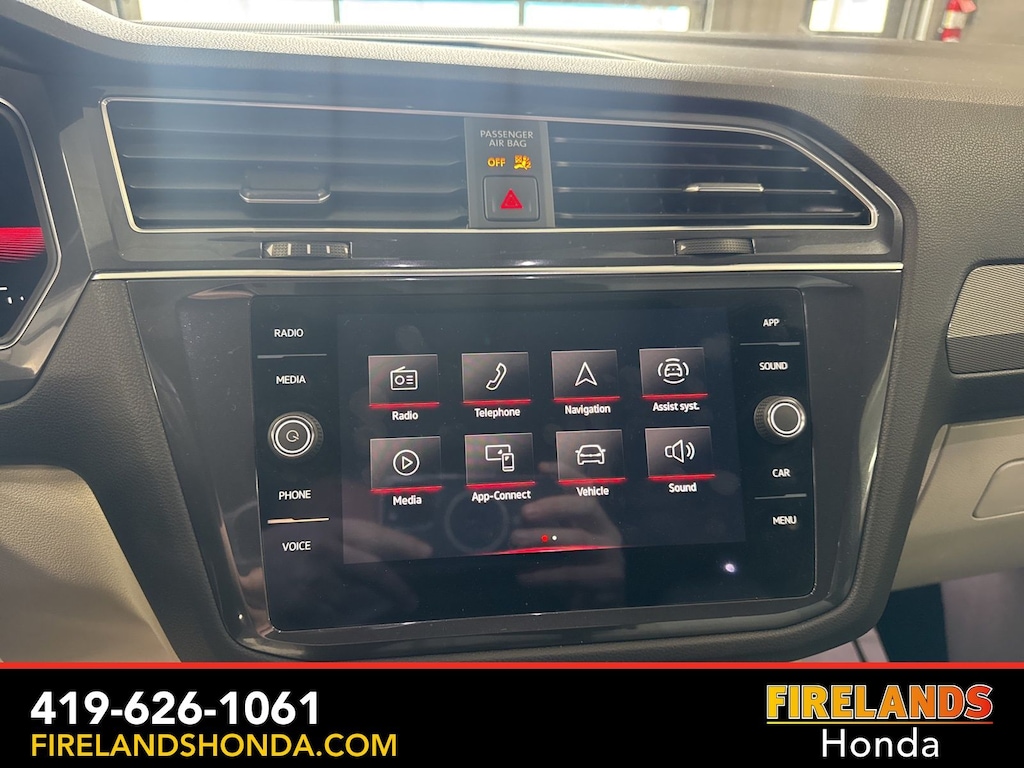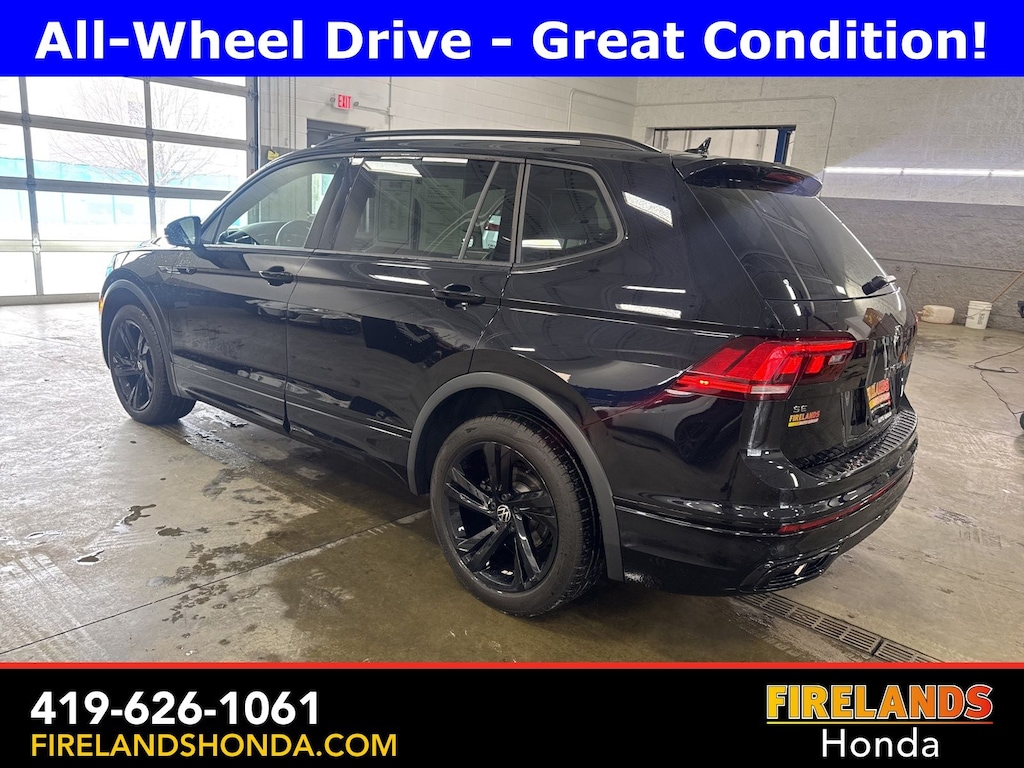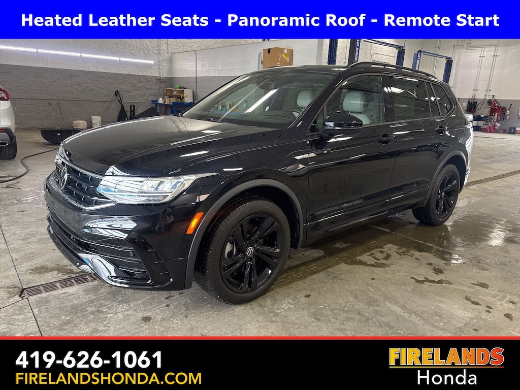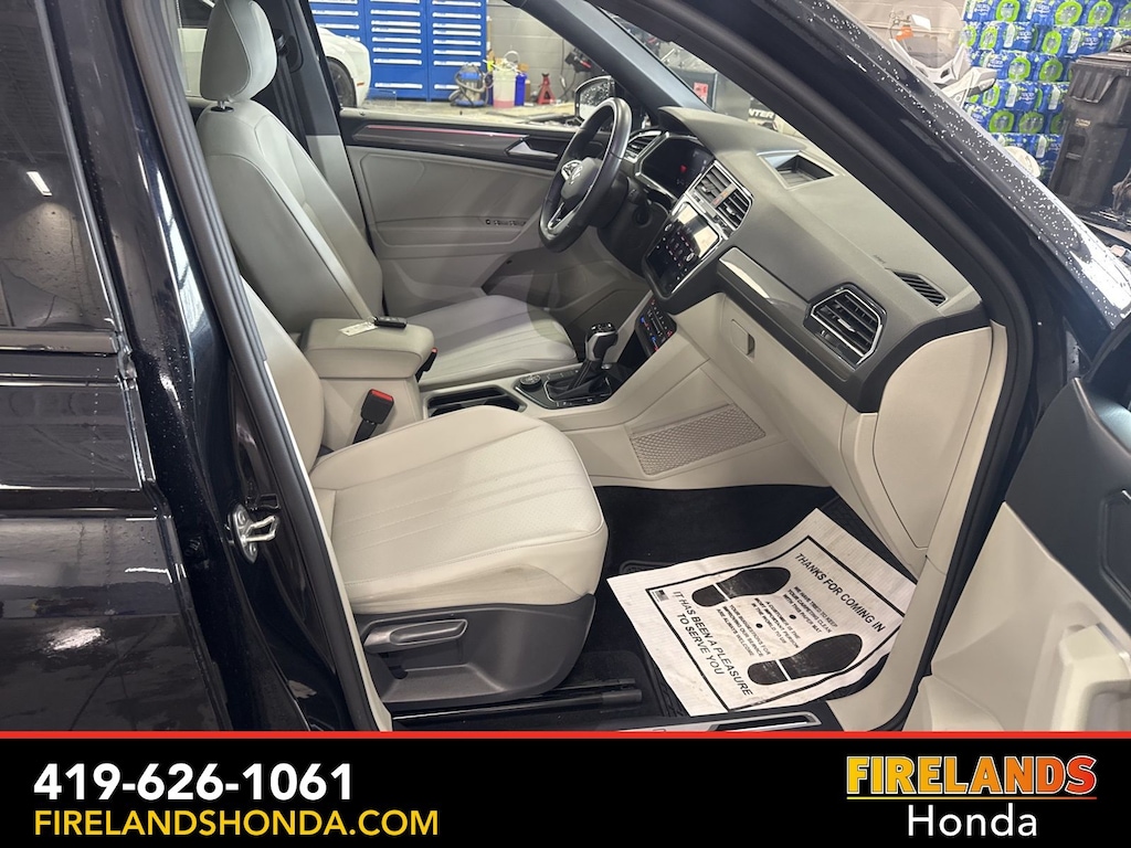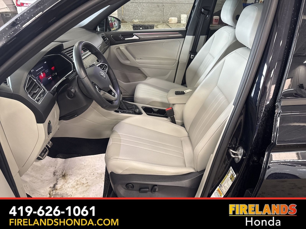 Firelands Honda is proud to offer this charming-looking 2023 Volkswagen Tiguan in Deep Black Pearl. This Tiguan has been checked by our award winning service department. Hot features include: Bluetooth Hands Free, Back Up Camera, Remote Start, Adaptive Cruise Control, Balance of Factory Warranty, Service Records Available, All-Wheel Drive, Heated Leather Seats, Locally Owned New Car Trade, Lane Departure Warning, Apple Carplay/Android Auto, Blind Spot Detection, Automatic Emergency Braking, Forward Collision Warning, Rear Cross Traffic Alert, Panoramic Moonroof, Clean CARFAX, One Owner, No Accidents, Power Liftgate, 3.33 Axle Ratio, Exterior Parking Camera Rear, Front Center Armrest, Fully automatic headlights, Heated door mirrors, Heated front seats, Leather Shift Knob, Perforated V-Tex Leatherette Seating Surfaces, Power door mirrors, Power driver seat, Power moonroof, Power windows, Speed control, Steering wheel mounted audio controls, Turn signal indicator mirrors, Wheels: 19" Black Painted Twin 5-Spoke Alloy.